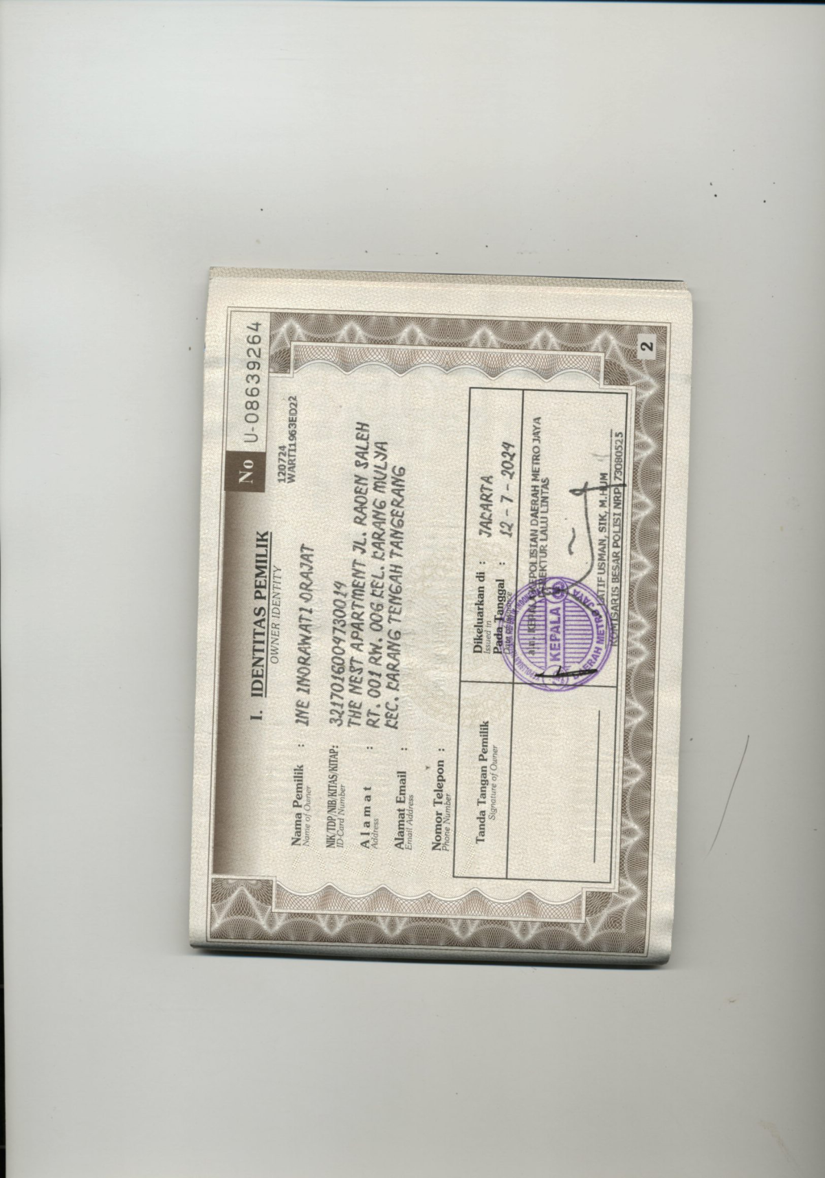 No. Polisi | : | B 2369 VVD |