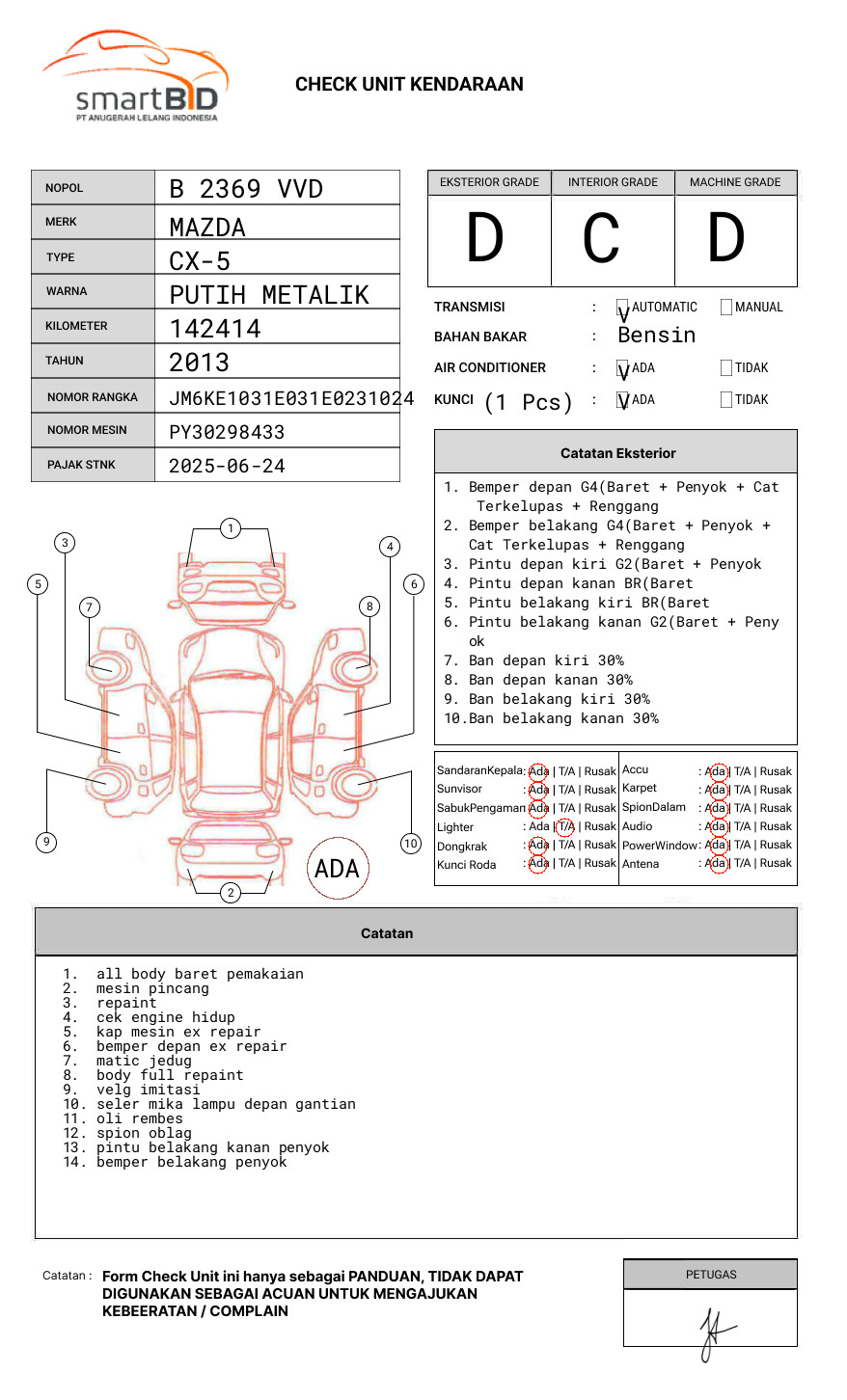 SEBELUM MELAKUKAN PENAWARAN UNIT PESERTA LELANG WAJIB MELAKUKAN PENGECEKAN UNIT DAN DOKUMEN TERLEBIH DAHULU //WANDA :62 858-6767-0166 // UNIT DIKENAKAN BIAYA PPN 1.1% DARI HARGA TERBENTUK //