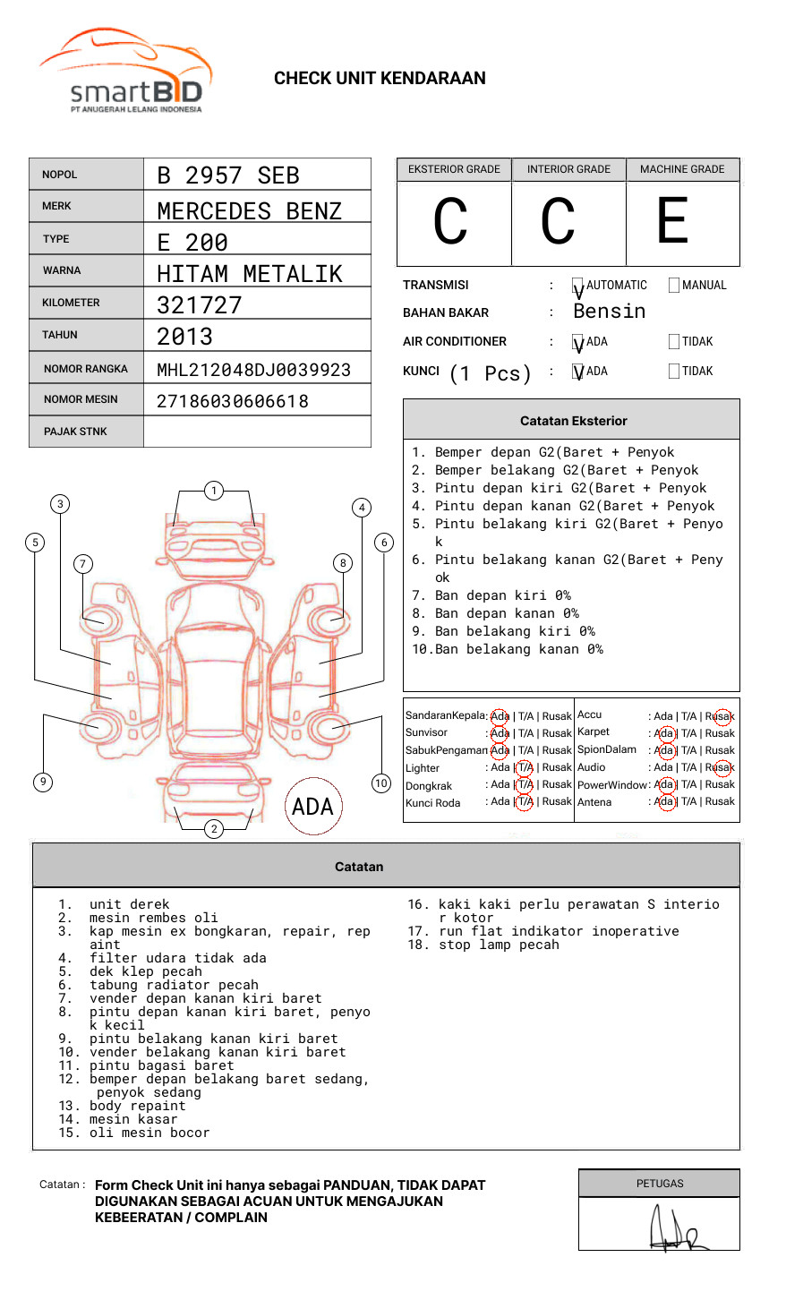 SEBELUM MELAKUKAN PENAWARAN UNIT PESERTA LELANG WAJIB MELAKUKAN PENGECEKAN UNIT DAN DOKUMEN TERLEBIH DAHULU // PIC AWAL +62 895-3231-57272 / ANDRI 085136886212 // UNIT DIKENAKAN BIAYA PPN 1.1% DARI HARGA TERBENTUK