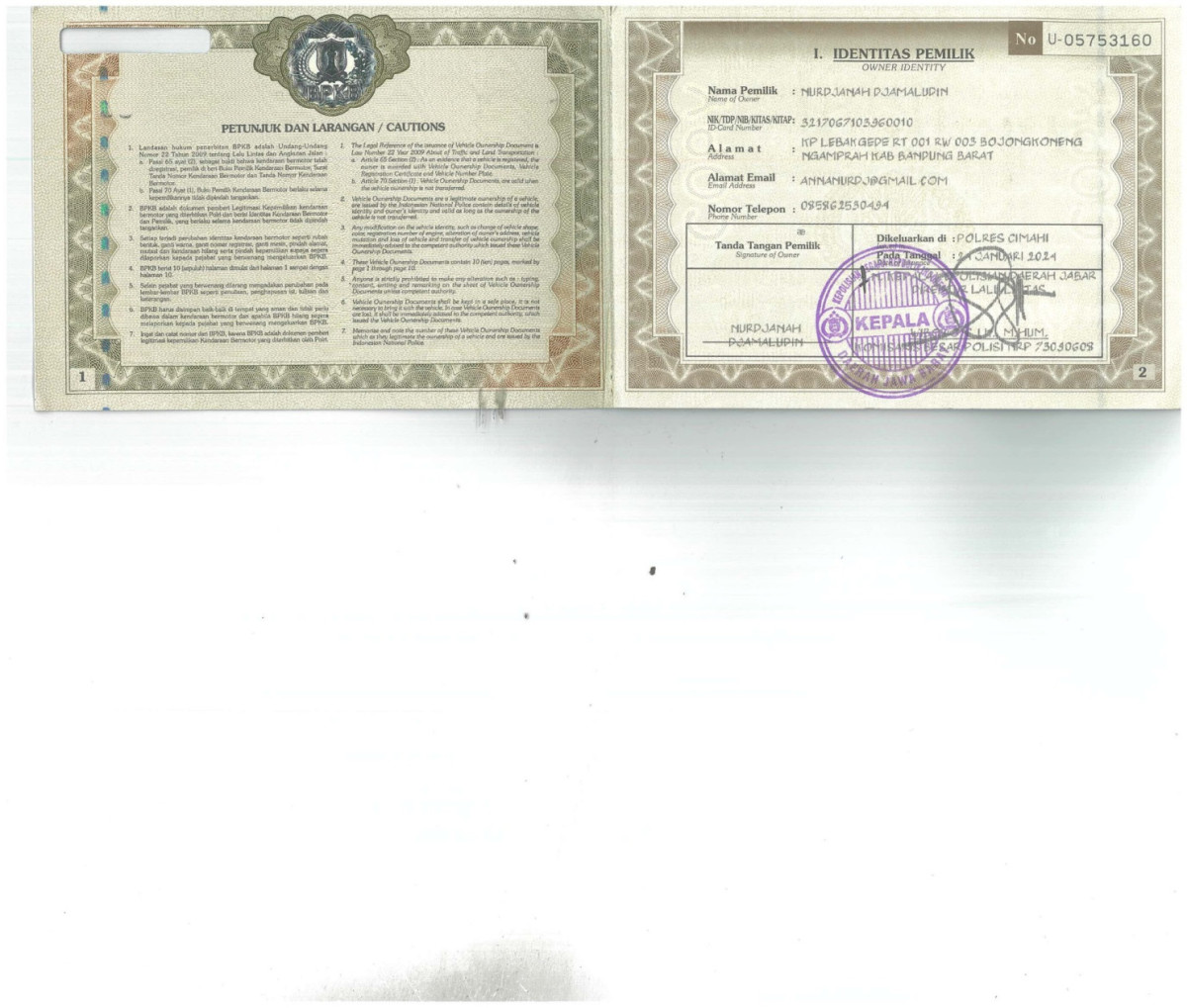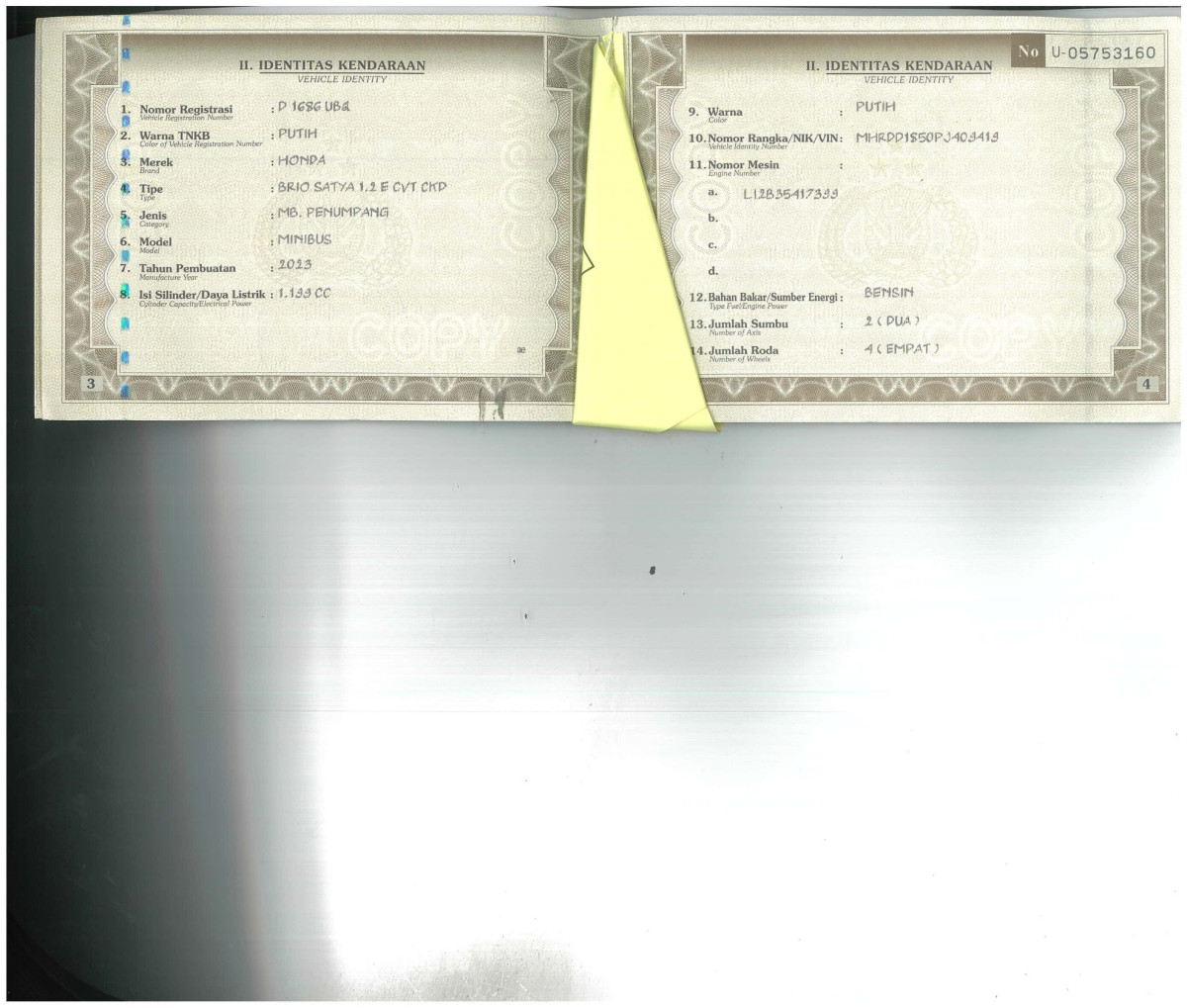 TERDAPAT PERBEDAAN NOPOL PADA FISIK "B 1863 EZP" PADA DOKUMEN "D 1686 UBQ" // TIDAK ADA LEMBAR PERUBAHAN NOPOL // INDIKASI NOPOL PALSU/BBN GANTUNG // SEBELUM MELAKUKAN PENAWARAN UNIT PESERTA LELANG WAJIB MELAKUKAN PENGECEKAN KESESUAIAN UNIT DAN DOKUMEN UNIT// INFORMASI LENGKAP UNIT PIC MAS UD : 081213061687//UNIT DIKENAKAN PPN 1,1% DARI HARGA TERBENTUK// NO RANGKA DAN NO MESIN PADA FISIK RUSAK / TIDAK TERBACA// PEMENANG WAJIB MENANANDATANGANI SURAT PERNYATAAN YANG MENYATAKAN BAHWA PEMENANG SUDAH MENGETAHUI NOKA DAN NOSIN FISIK HALUS TIDAK TERBACA SAMA SEKALI DAN TIDAK AKAN MENUNTUT APAPUN KE PIHAK SMARTBID