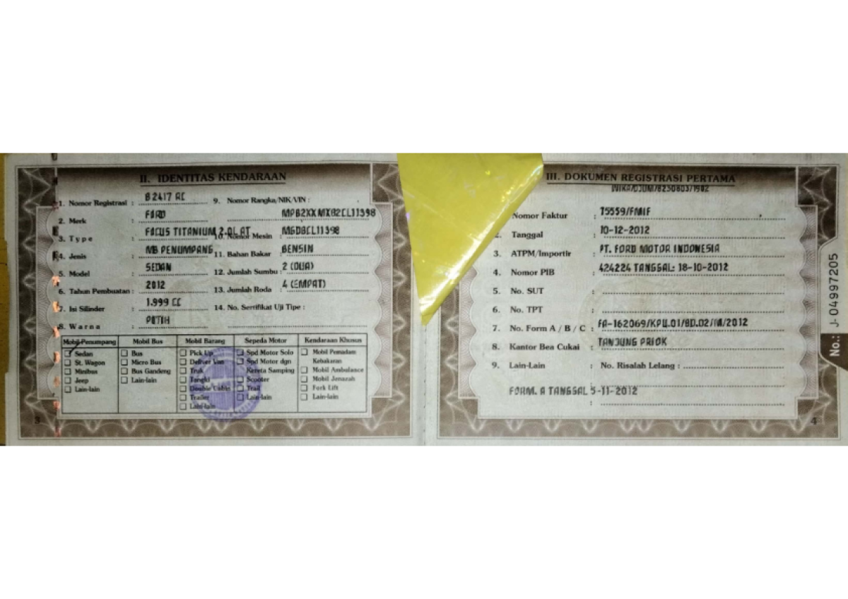 No. Rangka | : | MPB2XXMXB2CL11398 |
