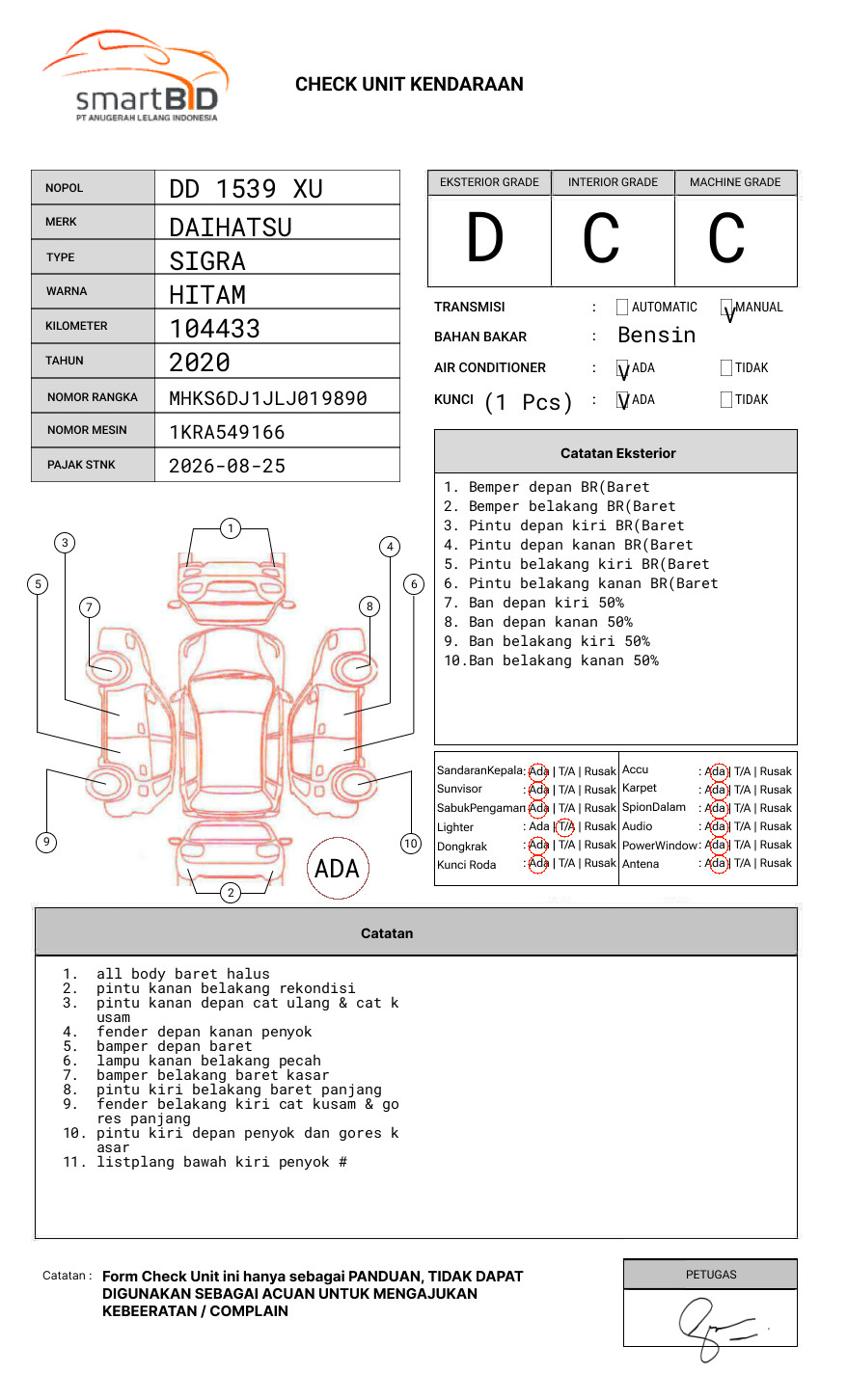SEBELUM MELAKUKAN PENAWARAN UNIT PESERTA LELANG WAJIB MELAKUKAN PENGECEKAN UNIT DAN DOKUMEN TERLEBIH DAHULU // PIC LULU +62 856-5712-5589// SCAN FAKTUR TIDAK TERBACA JELAS