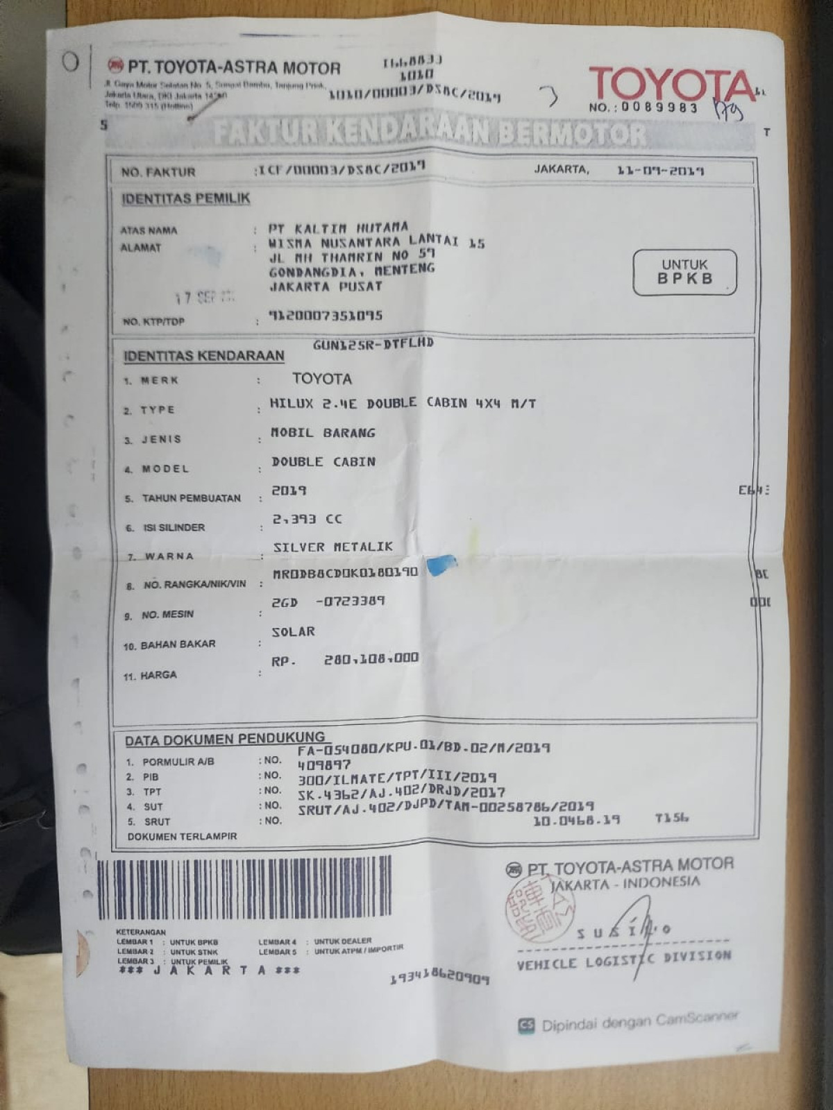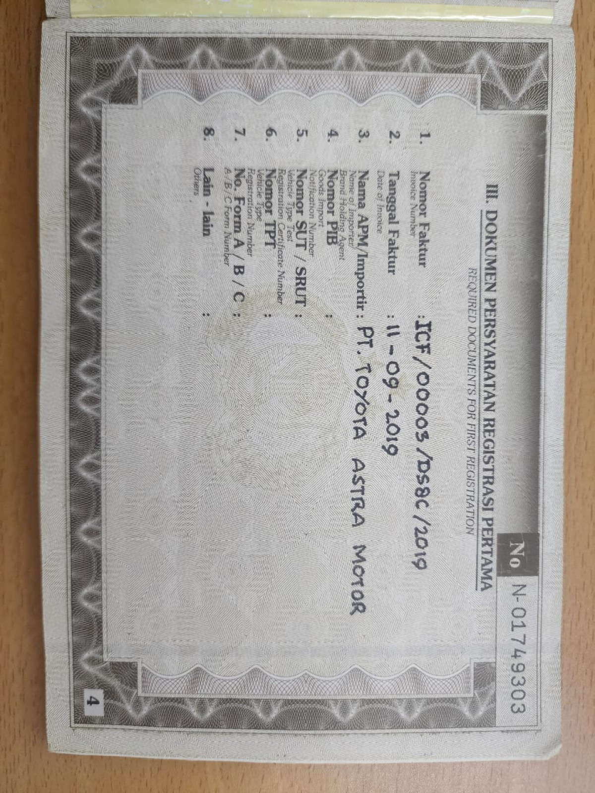No. Rangka | : | MR0DB8CD0K0180190 |