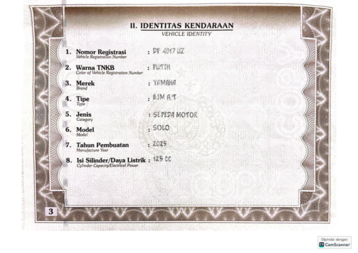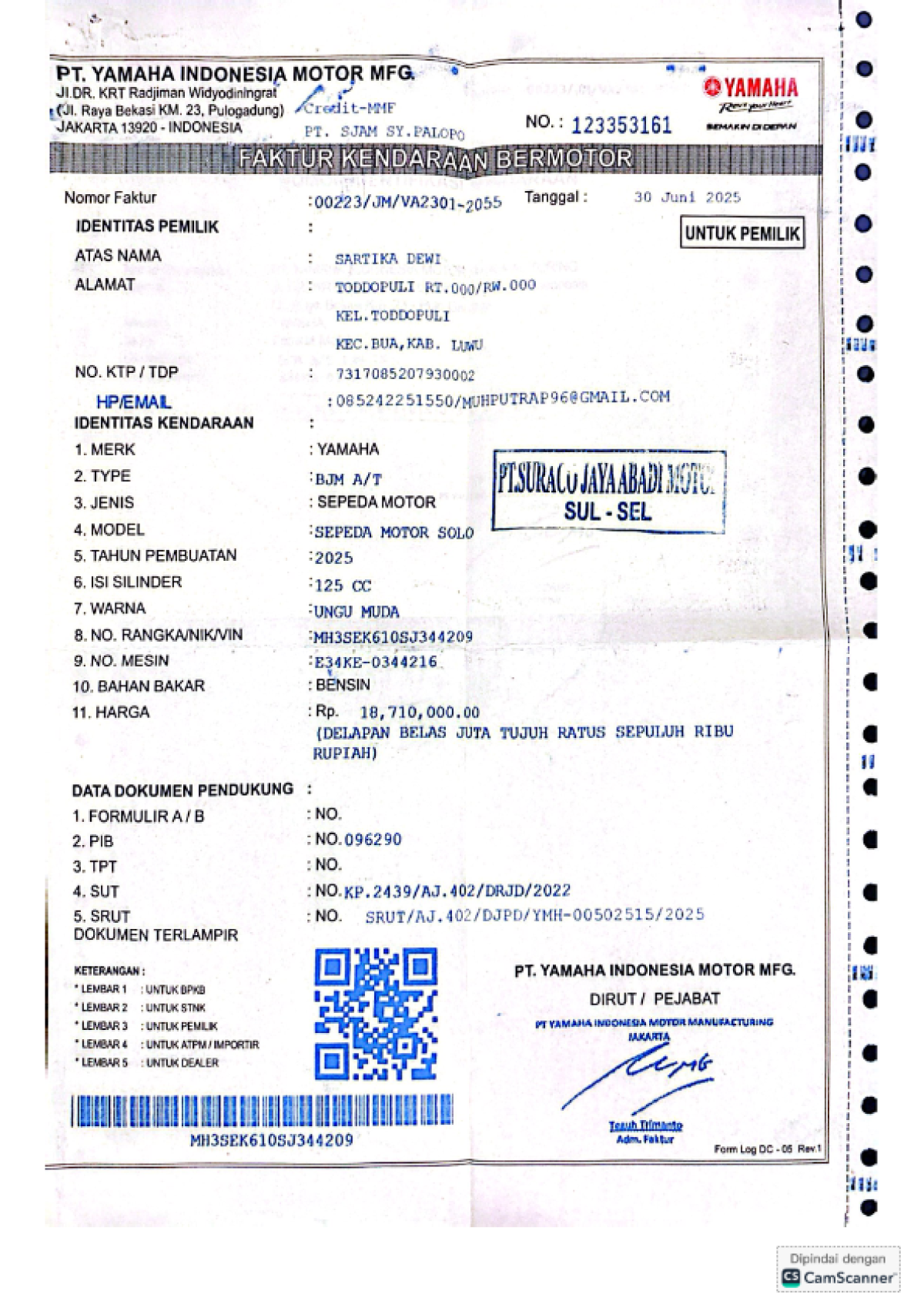 | No. Rangka | : | MH3SEK610SJ344209 |