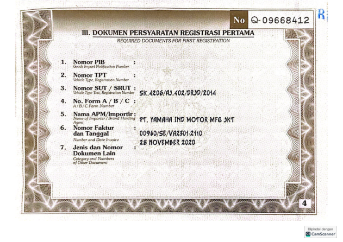 | STNK | : | Tidak Ada |