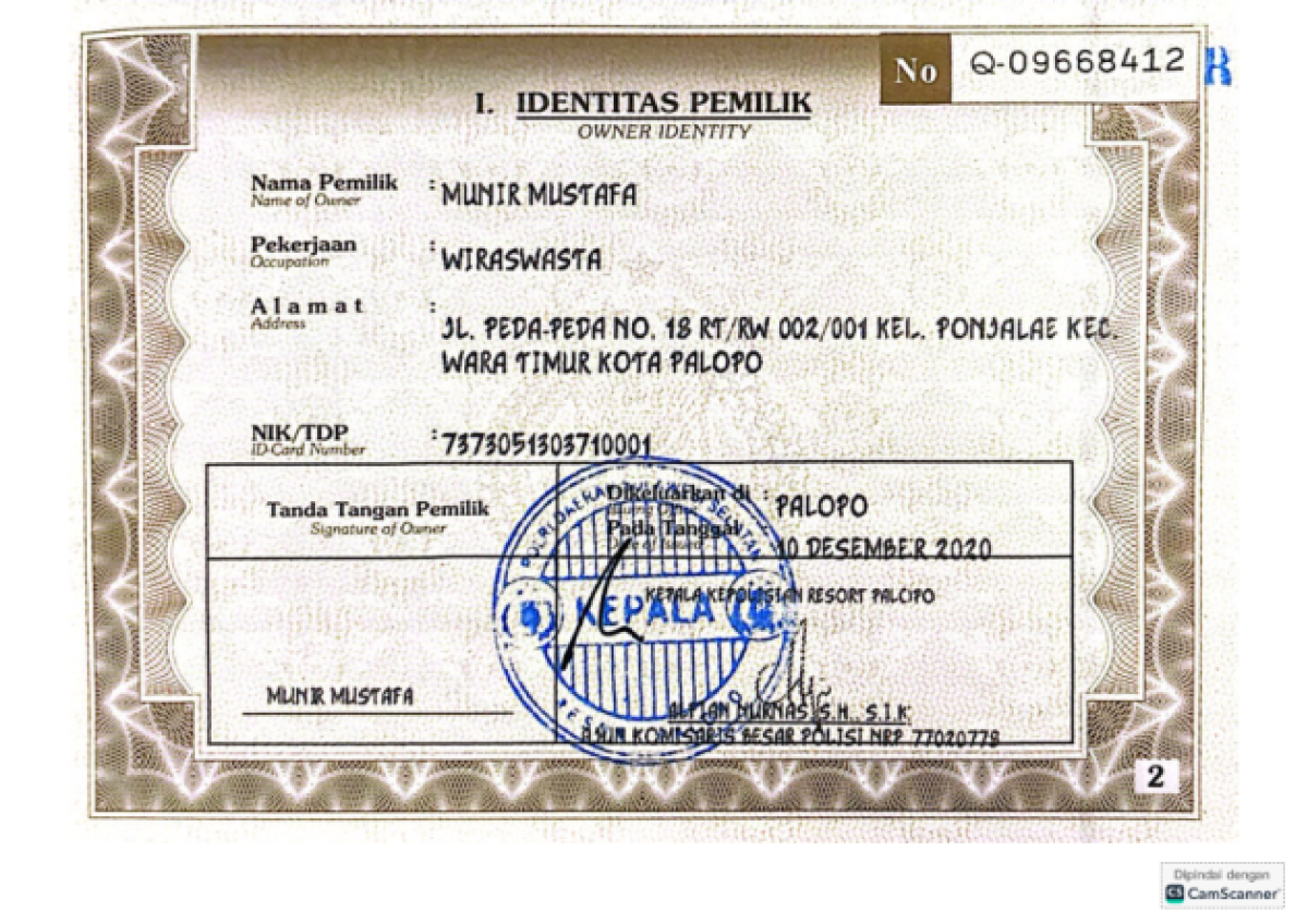 | No. Polisi | : | DP 2566 TI |