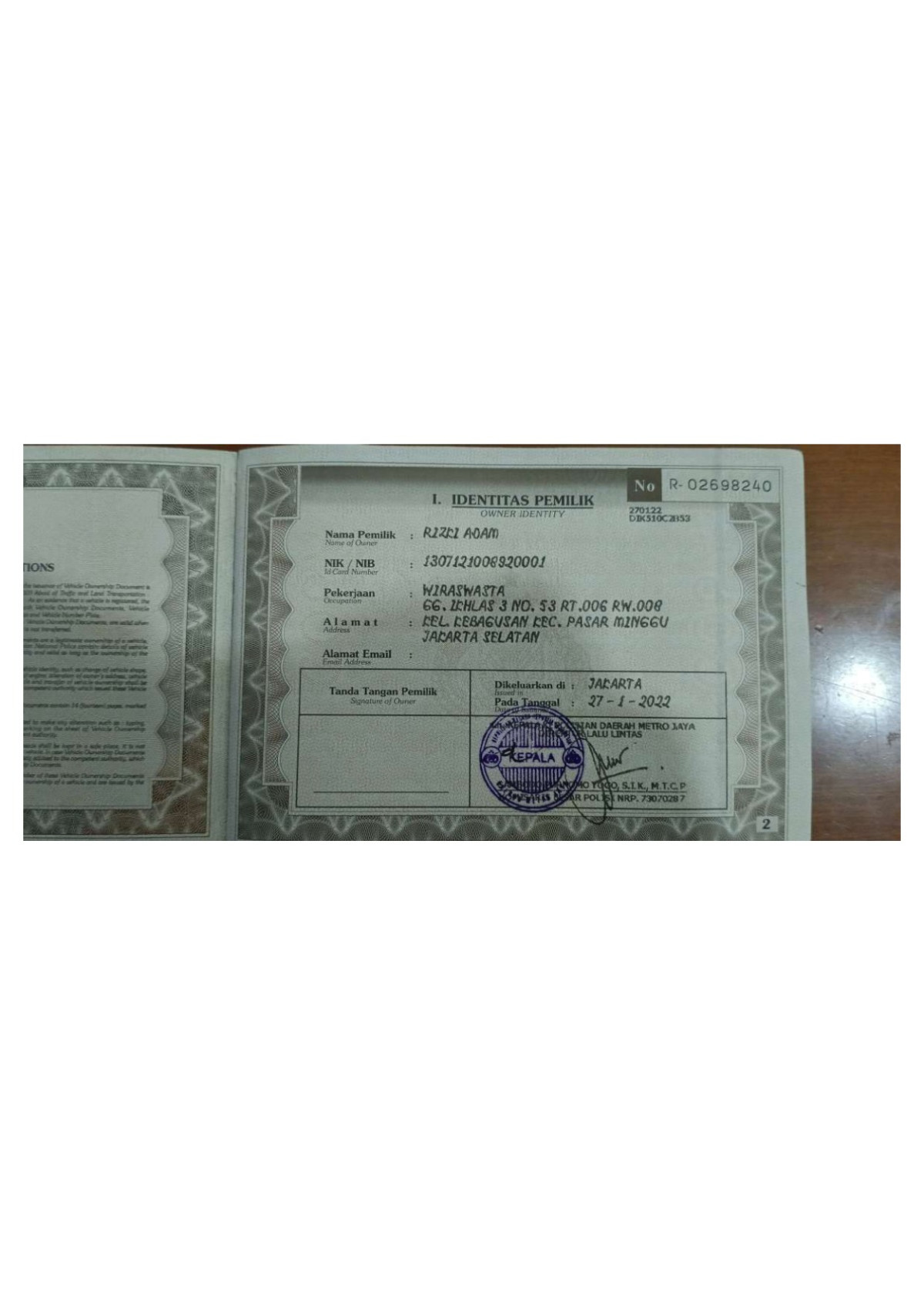 | No. Rangka | : | MHFBB3FS0M0221475 |