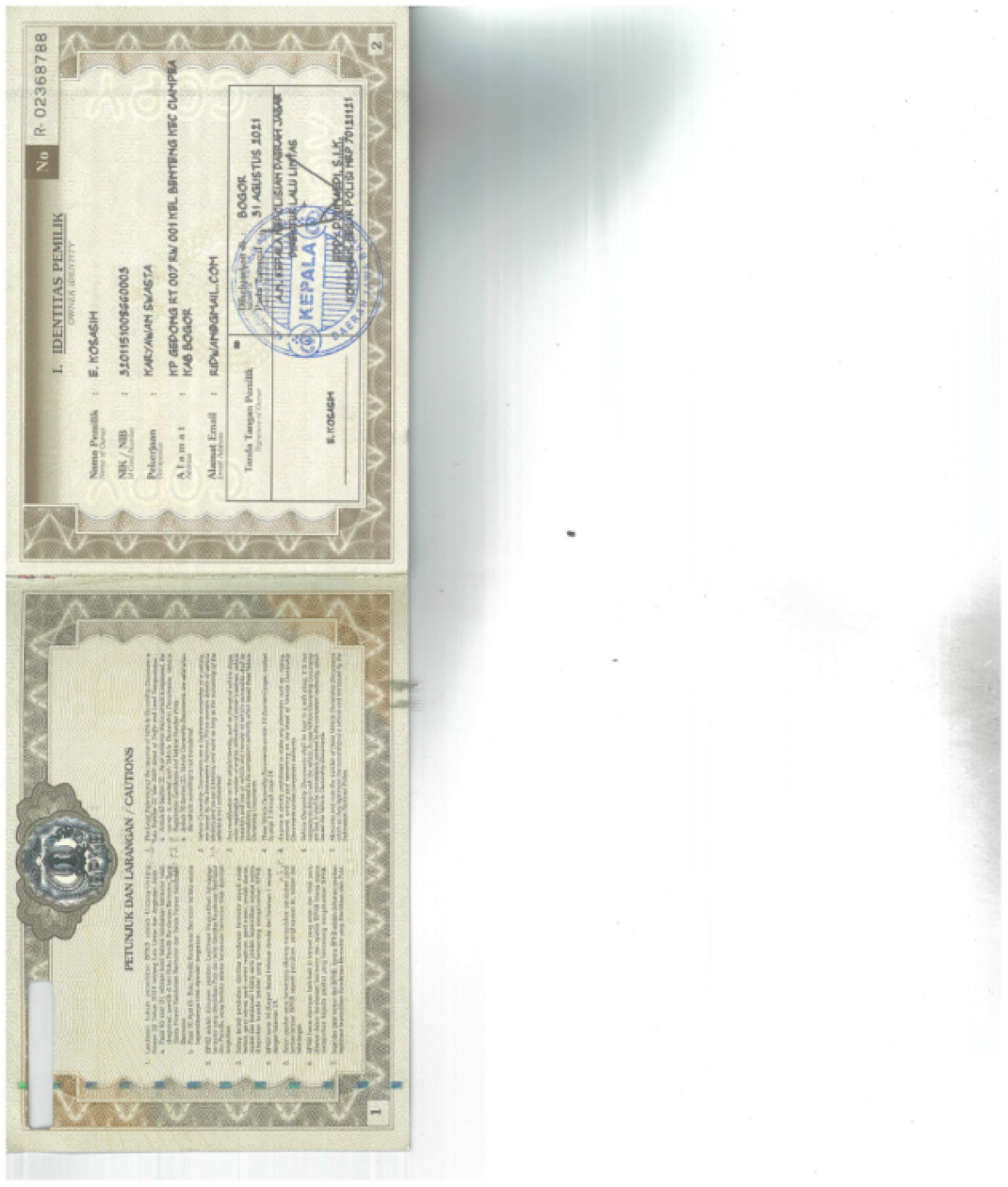 No. Polisi | : | F 1878 FAB |