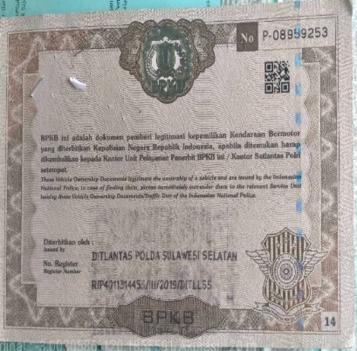 | No. Polisi | : | DD 1646 VB |