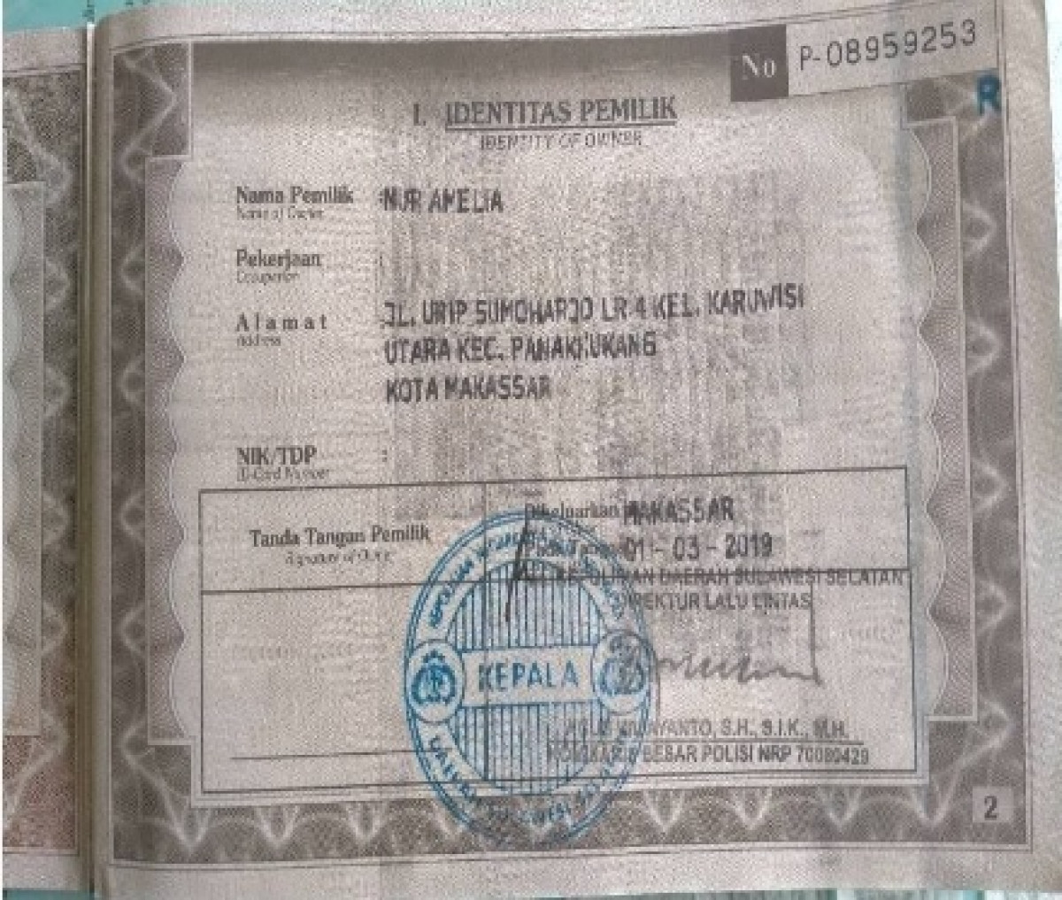 | KWT Blangko | : | Tidak Ada |