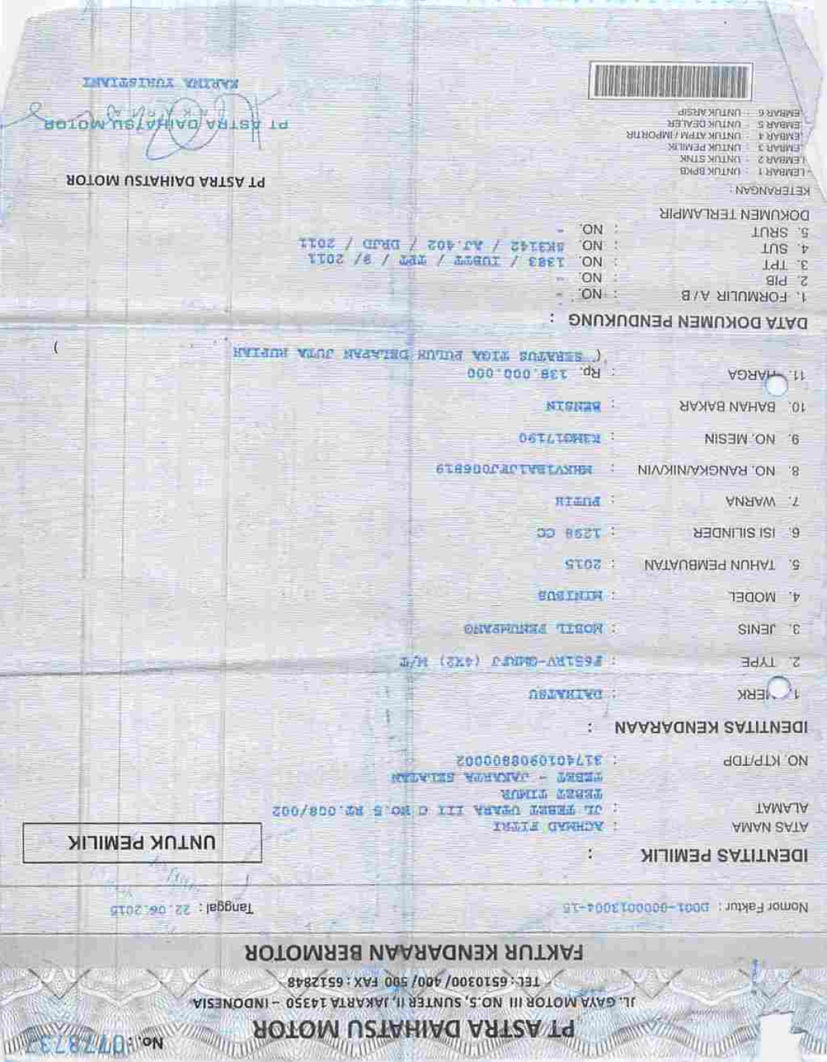 SEBELUM MELAKUKAN PENAWARAN UNIT PESERTA LELANG WAJIB MELAKUKAN PENGECEKAN UNIT DAN DOKUMEN TERLEBIH DAHULU // PIC JHONY : +62 813-7163-4690 // UNIT DIKENAKAN BIAYA PPN 1.1% DARI HARGA TERBENTUK // JANBOY :+62 821-6954-4266