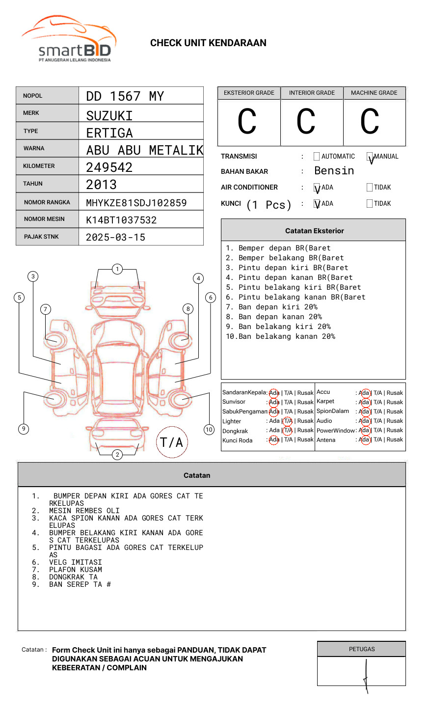 SEBELUM MELAKUKAN PENAWARAN UNIT PESERTA LELANG WAJIB MELAKUKAN PENGECEKAN UNIT DAN DOKUMEN TERLEBIH DAHULU // PIC RUDAL 0821 9140 0425 / MUHAMMAD DARWIS 082348587430 // UNIT DIKENAKAN BIAYA PPN 1.1% DARI HARGA TERBENTUK //