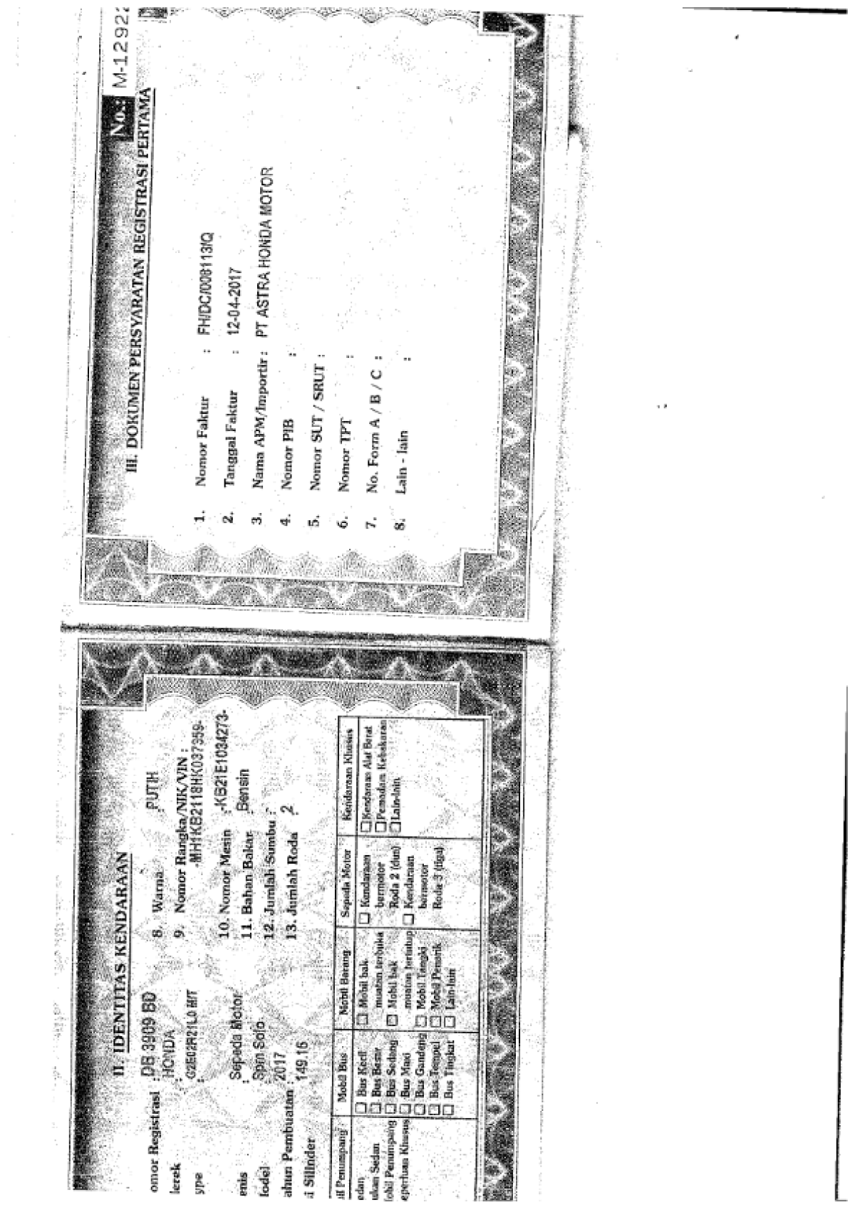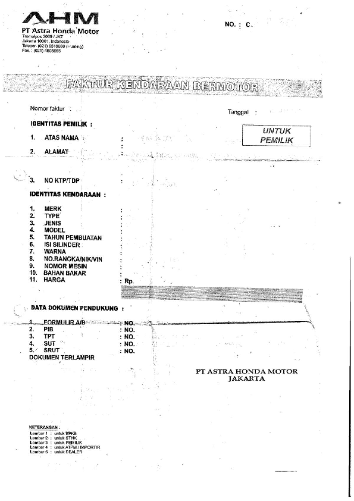 | STNK | : | Tidak Ada |