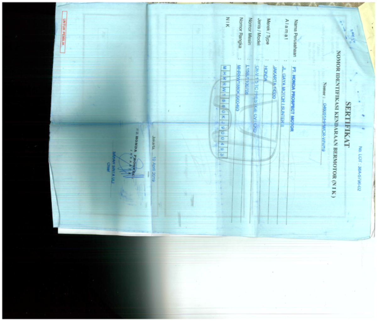 No. Rangka | : | MHRRW1880KJ900493 |
