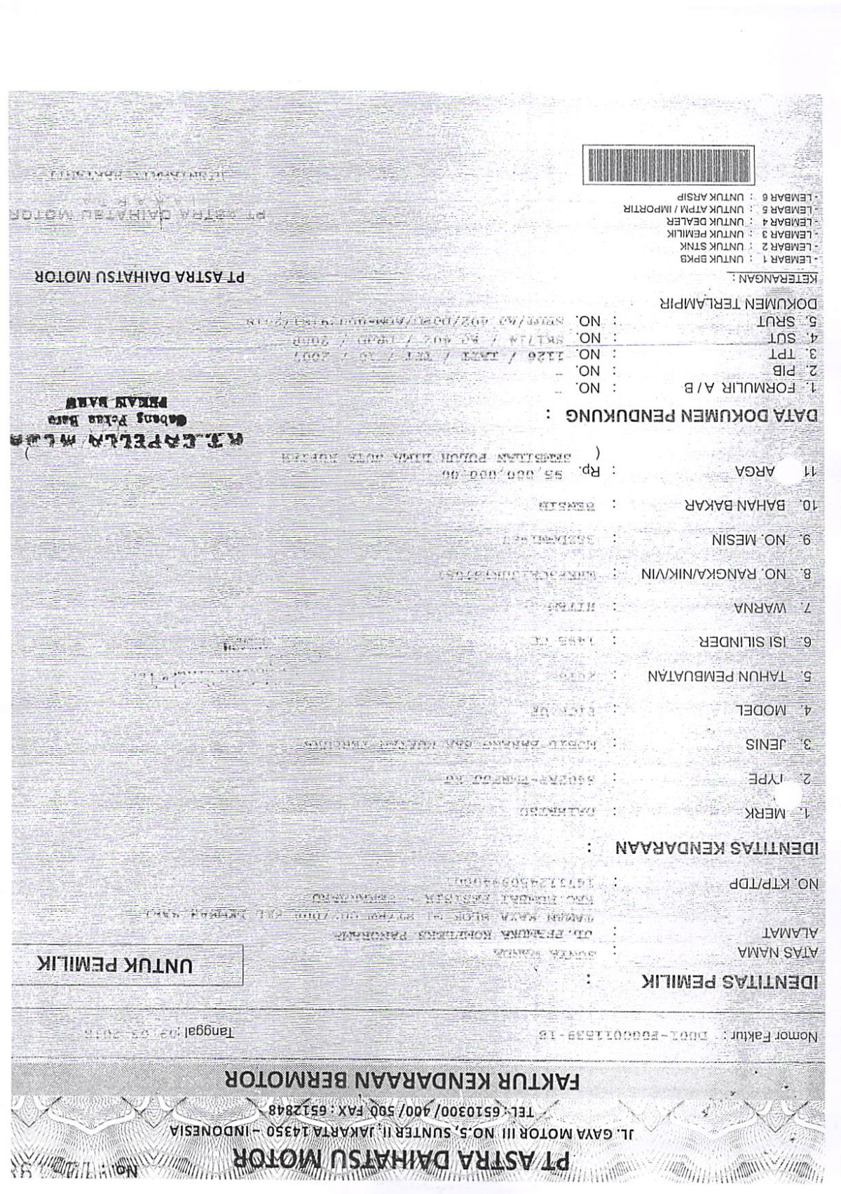 BPKB READY DI HO TANGERANG // SEBELUM MELAKUKAN PENAWARAN UNIT PESERTA LELANG WAJIB MELAKUKAN PENGECEKAN UNIT DAN DOKUMEN TERLEBIH DAHULU // PIC JHONY : +62 813-7163-4690 // UNIT DIKENAKAN BIAYA PPN 1.1% DARI HARGA TERBENTUK // FAKTUR DALAM BENTUK FOTOCOPY