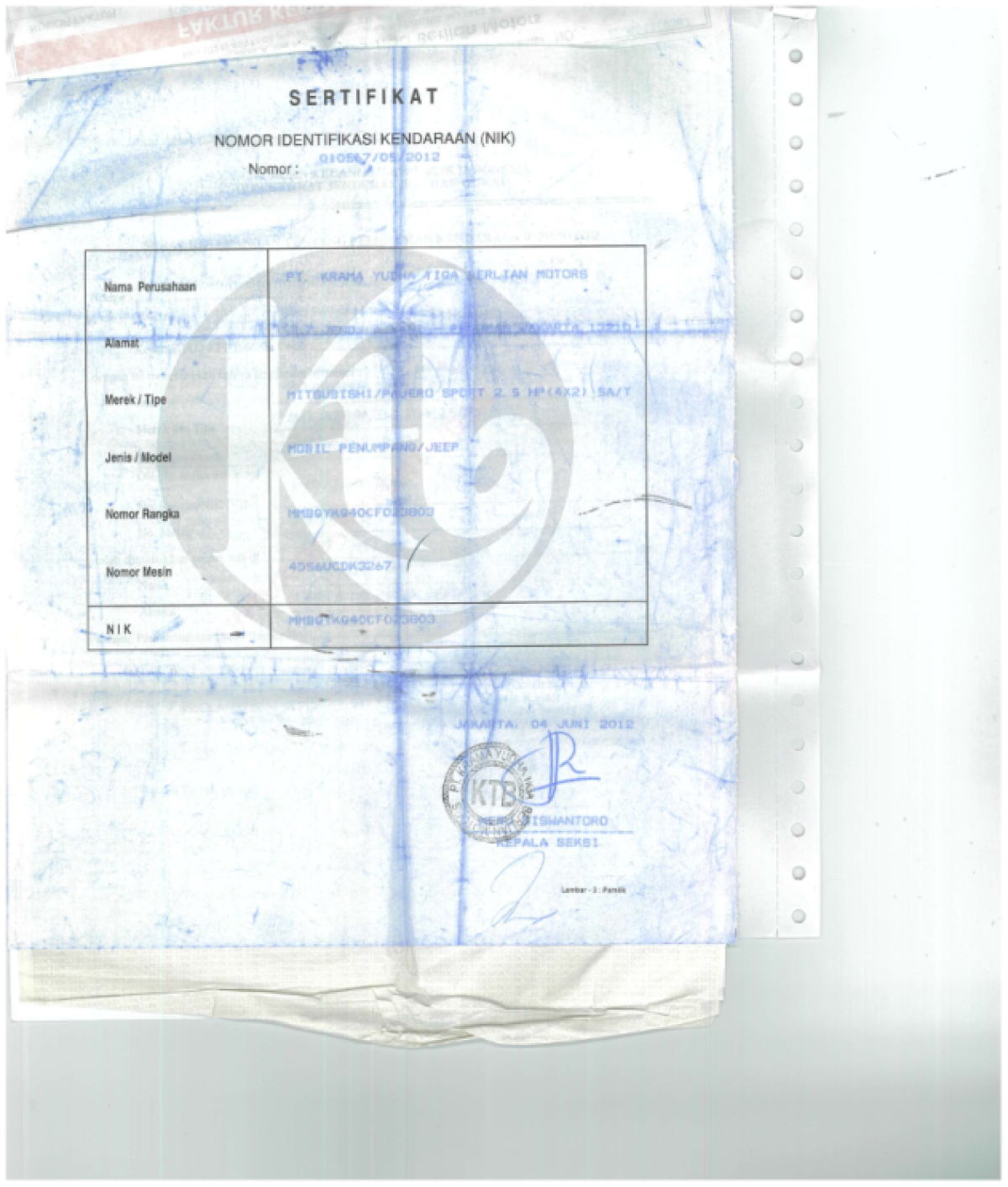 No. Mesin | : | 4D56UCDK3267 |