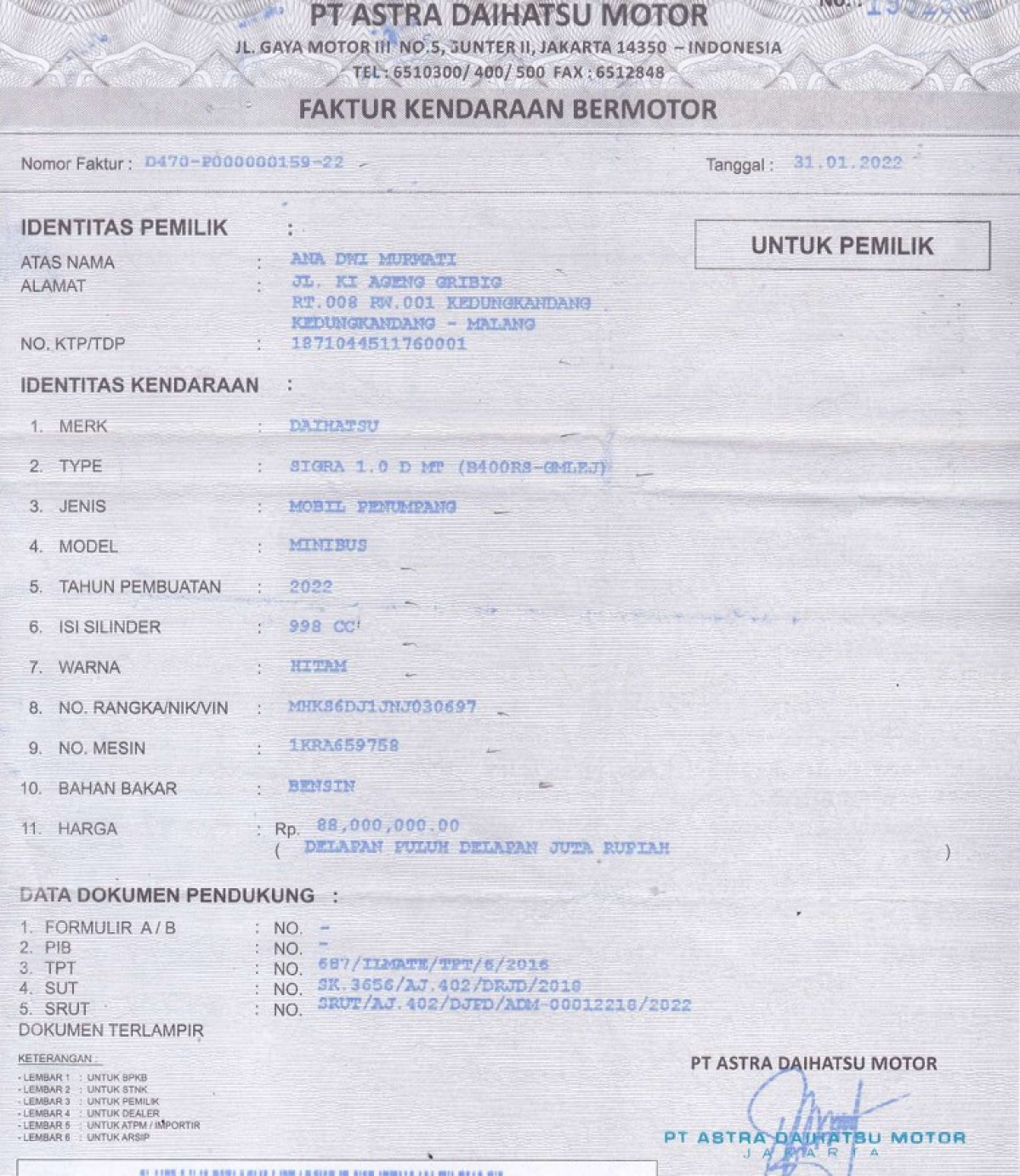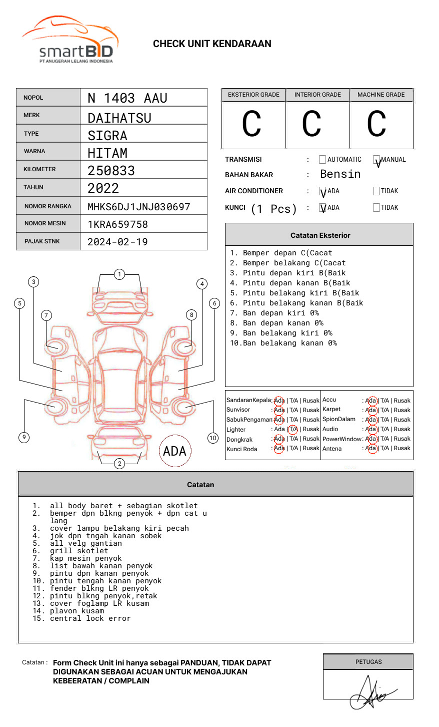 SEBELUM MELAKUKAN PENAWARAN HARAP CEK KONDISI UNIT SERTA DOKUMEN TERLEBIH DAHULU// UNIT DIKENAKAN BIAYA PPN 1,1% DARI HARGA TERBENTUK// PIC TOYIB : 081332024730