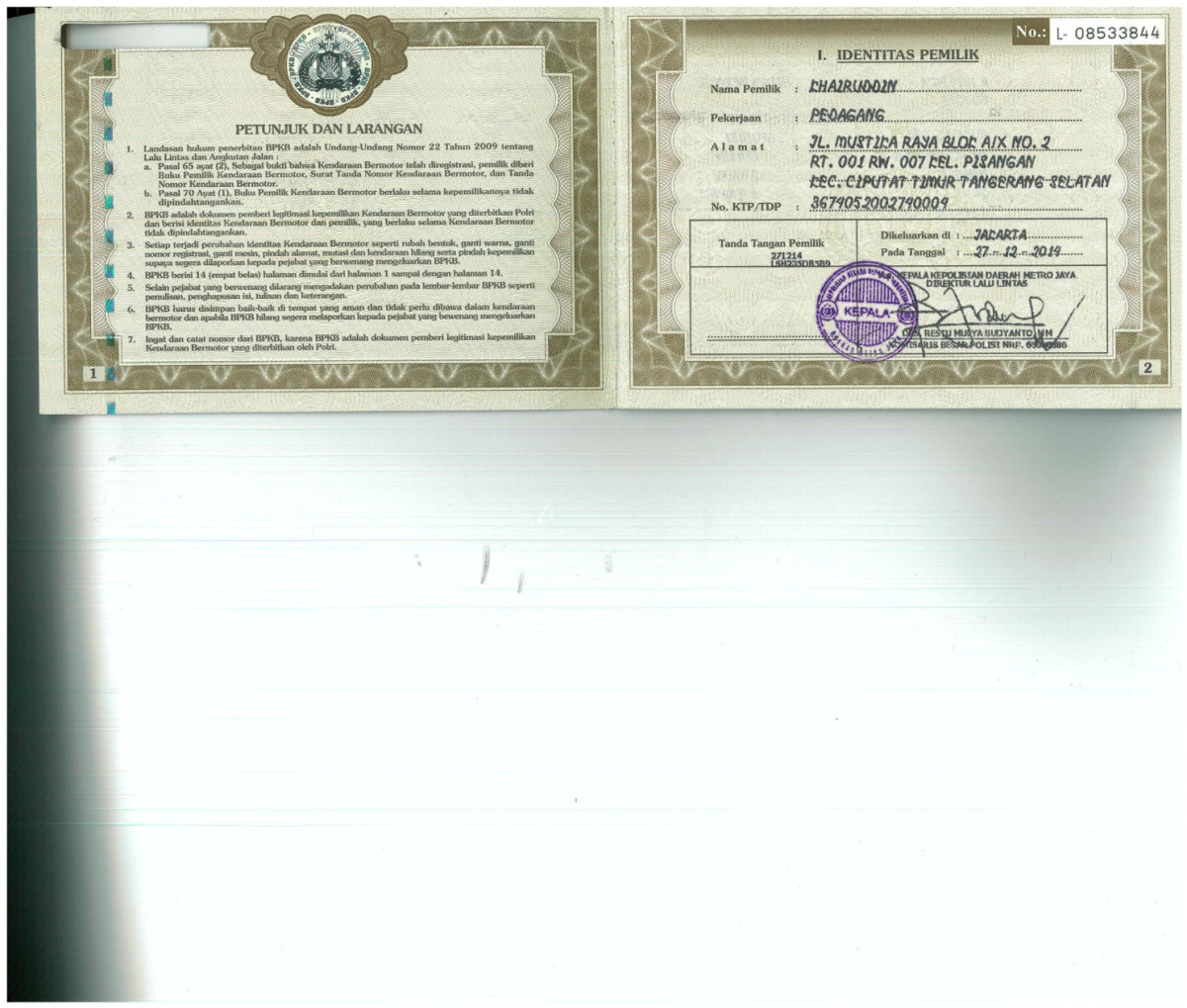 No. Rangka | : | MHFE2CK3JEK029486 |