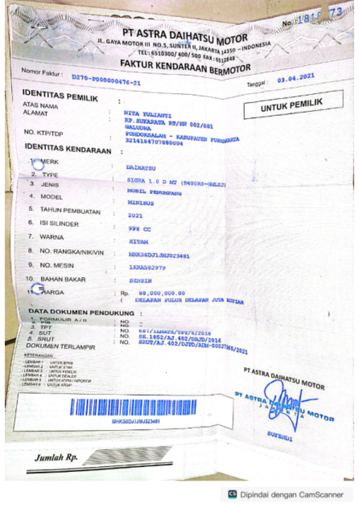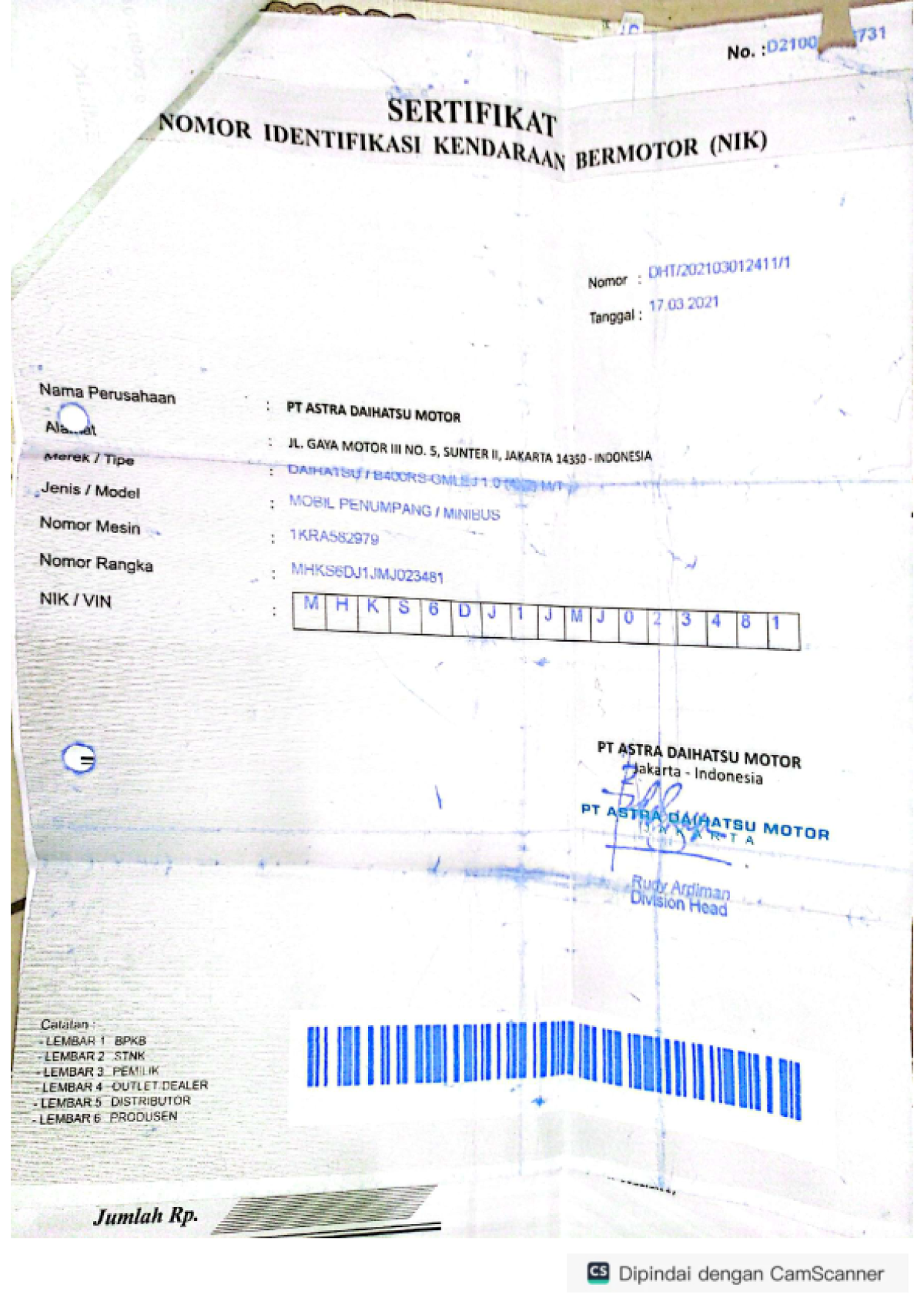 | No. Rangka | : | MHKS6DJ1JMJ023481 |