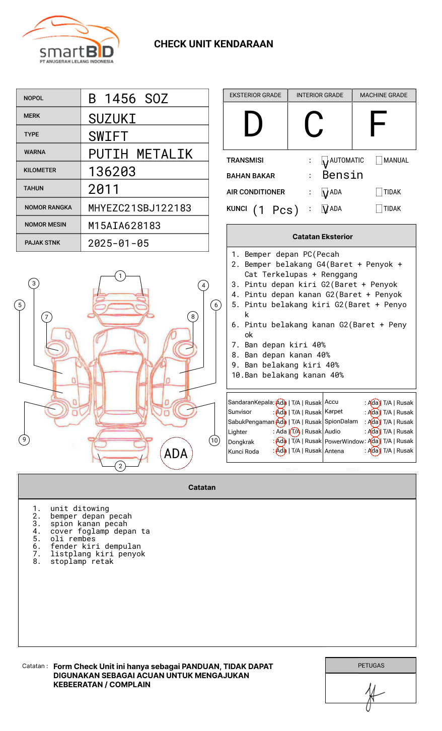 SEBELUM MELAKUKAN PENAWARAN UNIT PESERTA LELANG WAJIB MELAKUKAN PENGECEKAN UNIT DAN DOKUMEN TERLEBIH DAHULU //SAPUTRA 089614641697 // UNIT DIKENAKAN BIAYA PPN 1.1% DARI HARGA TERBENTUK //