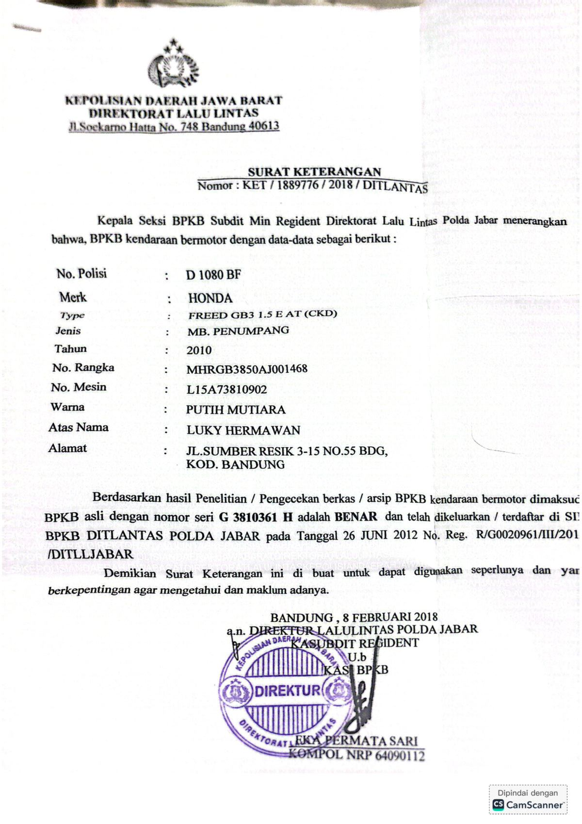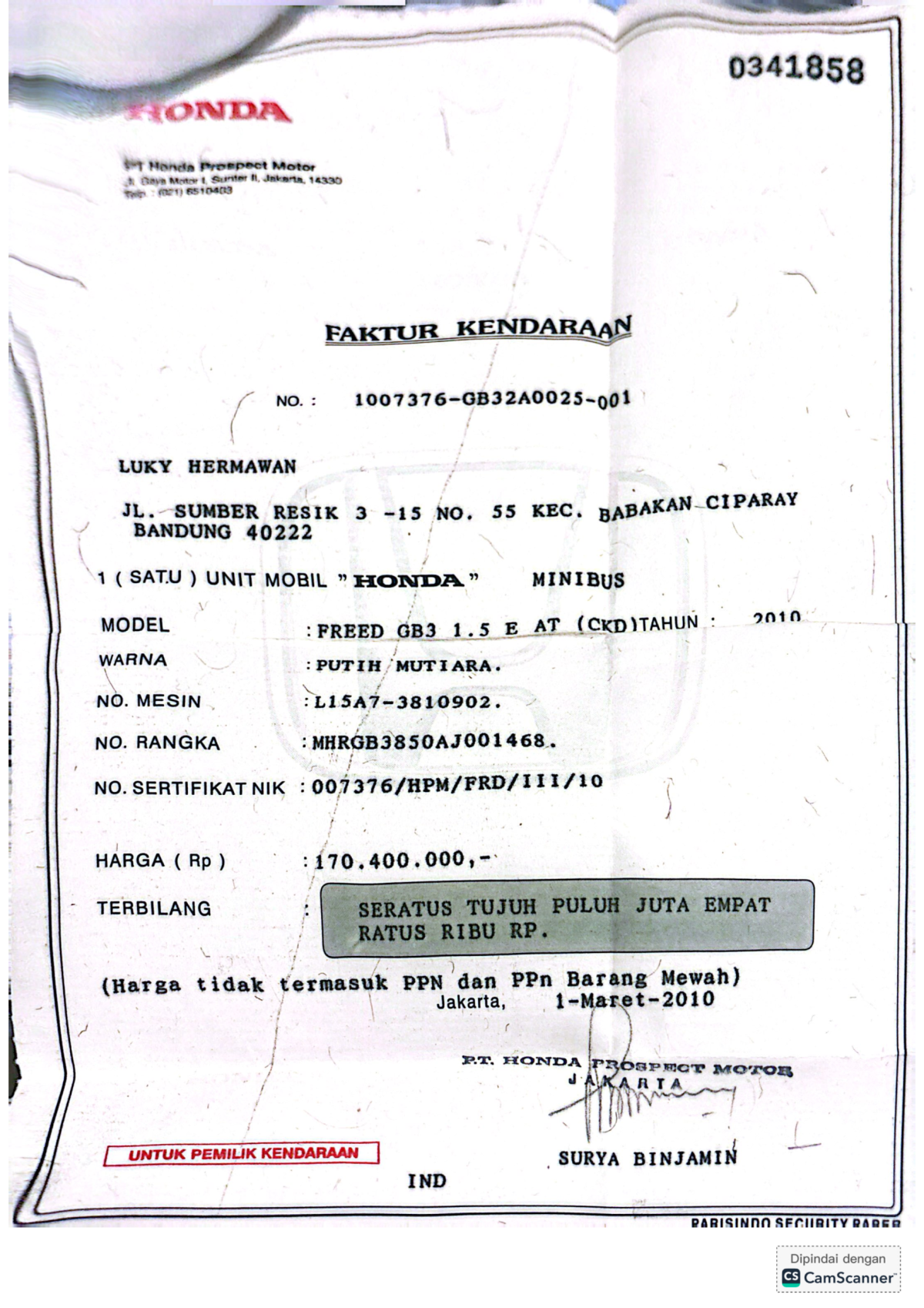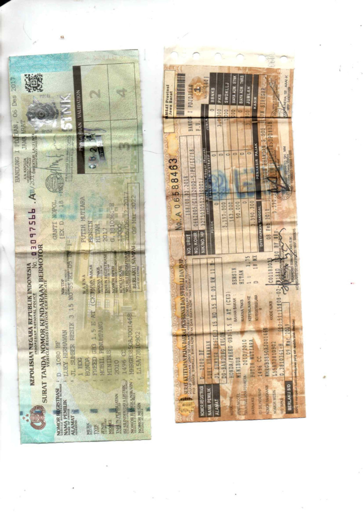 UNIT TIDAK DILAKUKAN PENGECEKAN OLEH TIM SMARTBID// SEBELUM MELAKUKAN PENAWARAN HARAP CEK KONDISI UNIT DAN DOKUMEN TERLEBIH DAHULU// WAJIB MENGHUBUNGI PIC DAN DATANG KE LOKASI UNTUK PENGECEKAN UNIT// UNIT DILELANG APA ADANYA PERMASALAHAN YANG TIMBUL DILUAR TANGGUNG JAWAB SMARTBID// PENGAMBILAN UNIT SLIDE H+2 DARI PELUNASAN // JIKA INGIN MENGAMBIL UNIT HARAP UNTUK KONFIRMASI DAHULU KE SMARTBID // JIKA YANG MENGAMBIL BIDDER HARAP MEMBAWA KTP ASLI // JIKA PENGAMBILAN DIWAKILKAN WAJIB MEMBAWA SURAT KUASA ASLI//UNIT DIKENAKAN BIAYA PPN 1,1% DARI HARGA TERBENTUK// HUBUNGI PIC RESTI / 085769191651 / INFORMASI LENGKAP UNIT HUB CS PUSAT 0811119678//STNK BERUPA SCAN//ADA PERBEDAAN NOPOL FISIK DAN DOKUMEN BPKB//NOPOL FISIK (T 1323 ZZ), NOPOL BPKB (D 1080 BF)//INDIKASI BBN GANTUNG//LEMBAR PERUBAPAHAN IDENTITAS BPKB TA//