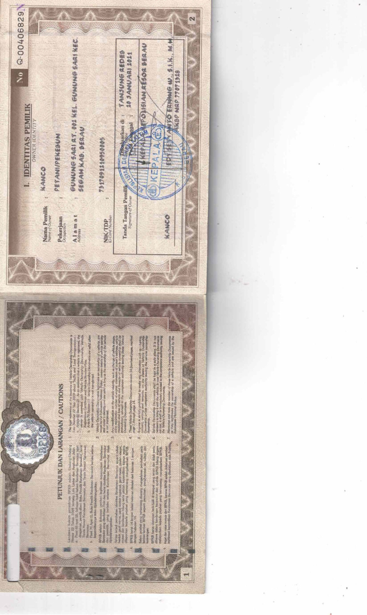| KWT Blangko | : | Tidak Ada |
