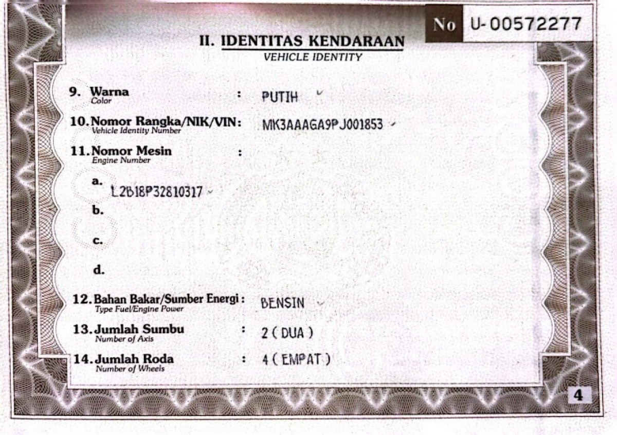 No. Rangka | : | MK3AAAGA9PJ001853 |
