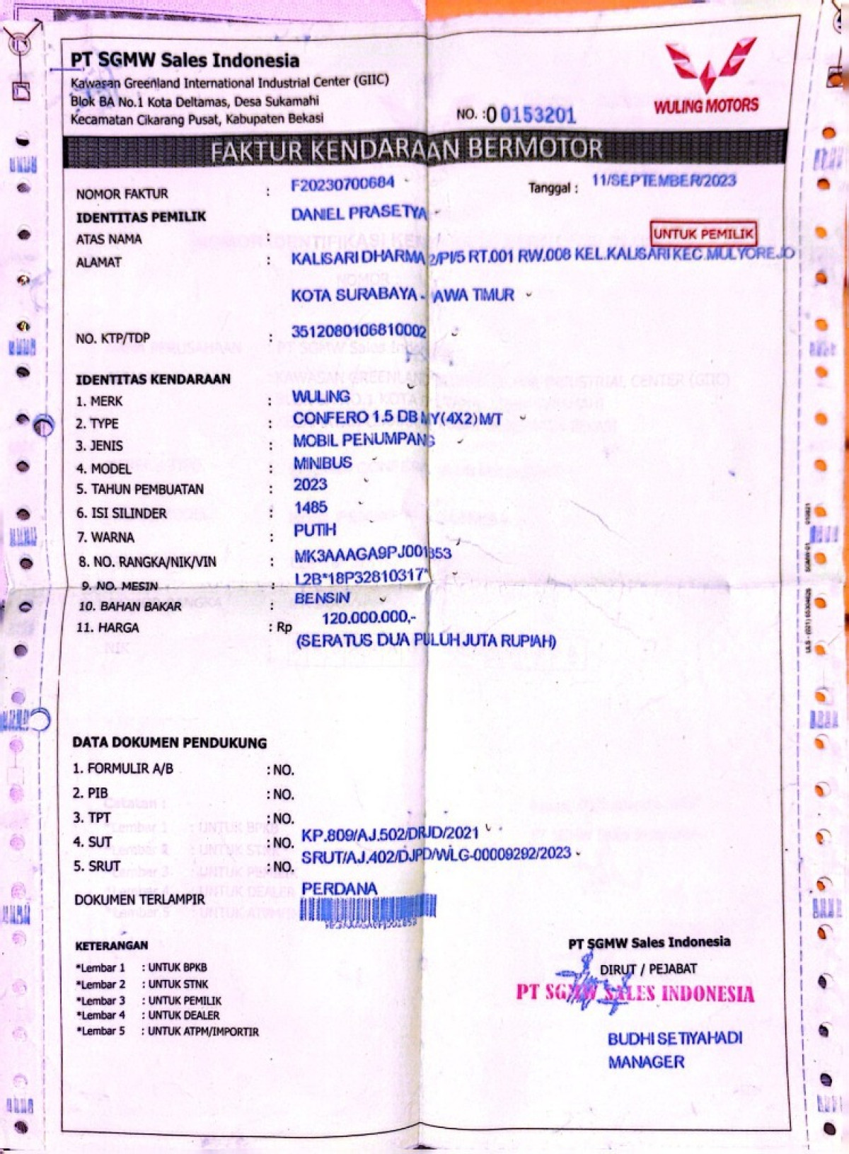 UNIT TIDAK DILAKUKAN PENGECEKAN OLEH TIM SMARTBID// SEBELUM MELAKUKAN PENAWARAN HARAP CEK KONDISI UNIT DAN DOKUMEN TERLEBIH DAHULU// WAJIB MENGHUBUNGI PIC DAN DATANG KE LOKASI UNTUK PENGECEKAN UNIT// UNIT DILELANG APA ADANYA PERMASALAHAN YANG TIMBUL DILUAR TANGGUNG JAWAB SMARTBID// PENGAMBILAN UNIT SLIDE H+2 DARI PELUNASAN // JIKA INGIN MENGAMBIL UNIT HARAP UNTUK KONFIRMASI DAHULU KE SMARTBID // JIKA YANG MENGAMBIL BIDDER HARAP MEMBAWA KTP ASLI // JIKA PENGAMBILAN DIWAKILKAN WAJIB MEMBAWA SURAT KUASA ASLI // UNIT DIKENAKAN BIAYA PPN 1,1% DARI HARGA TERBENTUK// HUBUNGI PIC MEIKE / 081330355451 / HUB CS PUSAT 0811119678