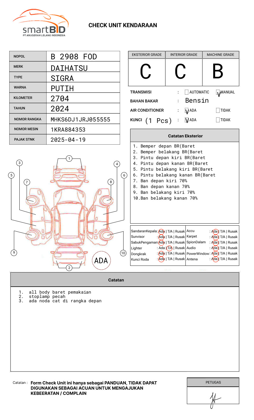 SEBELUM MELAKUKAN PENAWARAN UNIT PESERTA LELANG WAJIB MELAKUKAN PENGECEKAN UNIT DAN DOKUMEN TERLEBIH DAHULU // UNIT DIKENAKAN BIAYA PPN 1.1% DARI HARGA TERBENTUK // UNIT DIKENAKAN BIAYA ROYA FIDUSIA 100.000 // WANDA :62 858-6767-0166