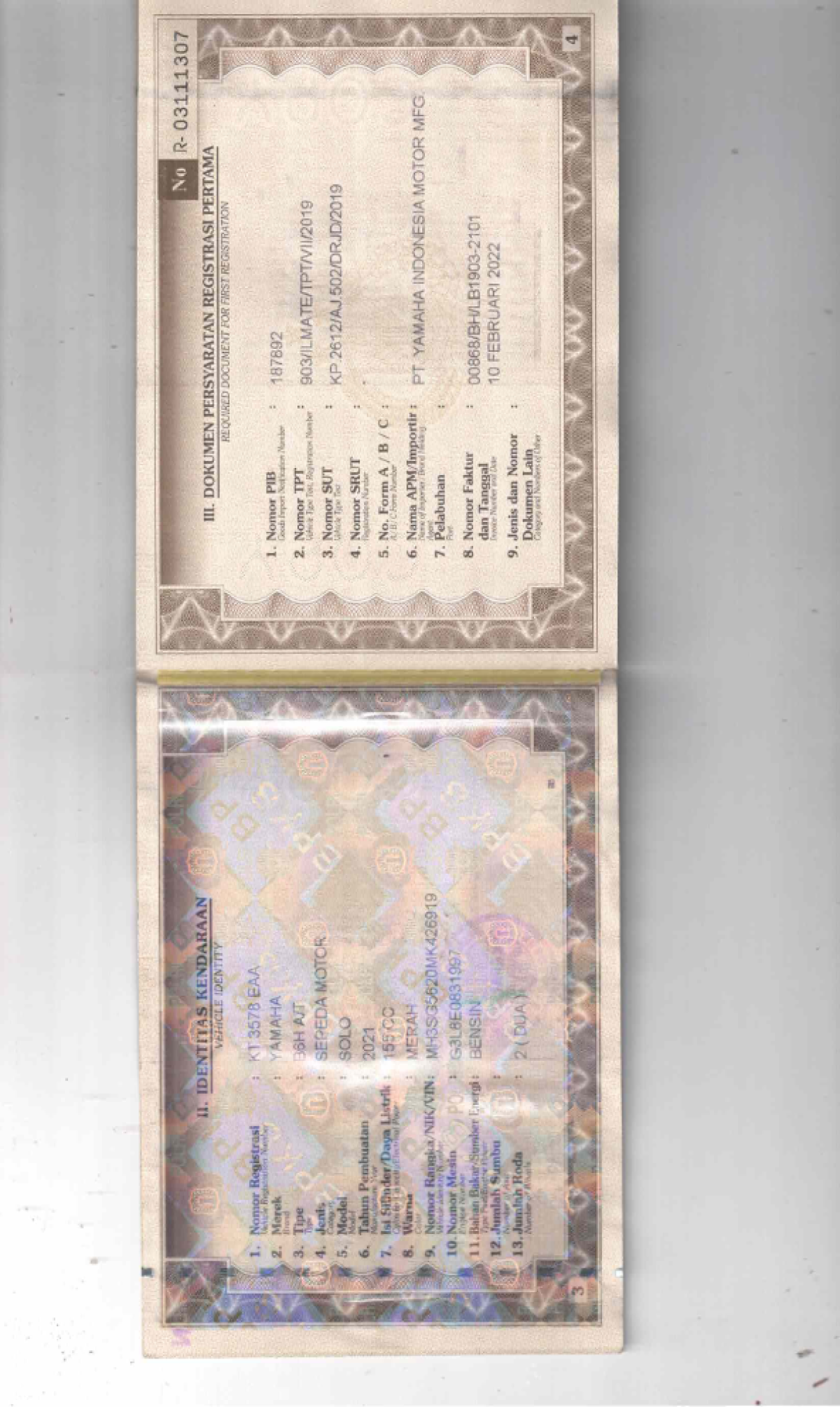 | No. Polisi | : | KT 3578 EAA |