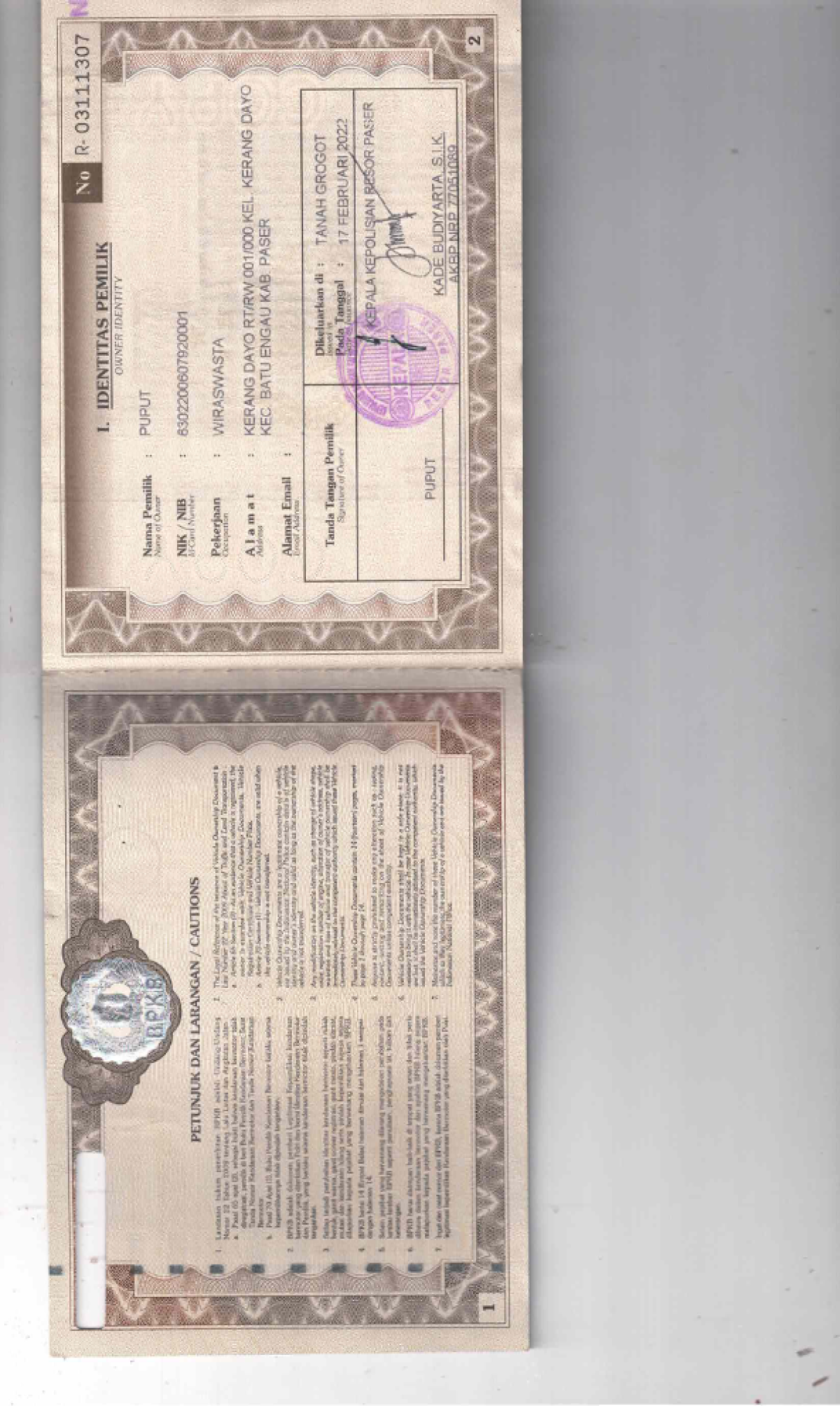 | KWT Blangko | : | Tidak Ada |