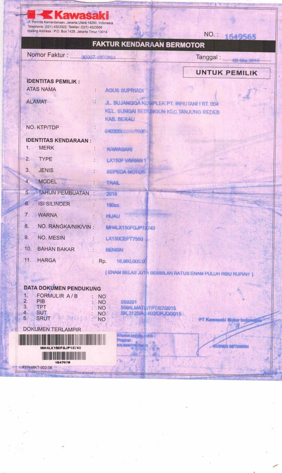 | KWT Blangko | : | Tidak Ada |