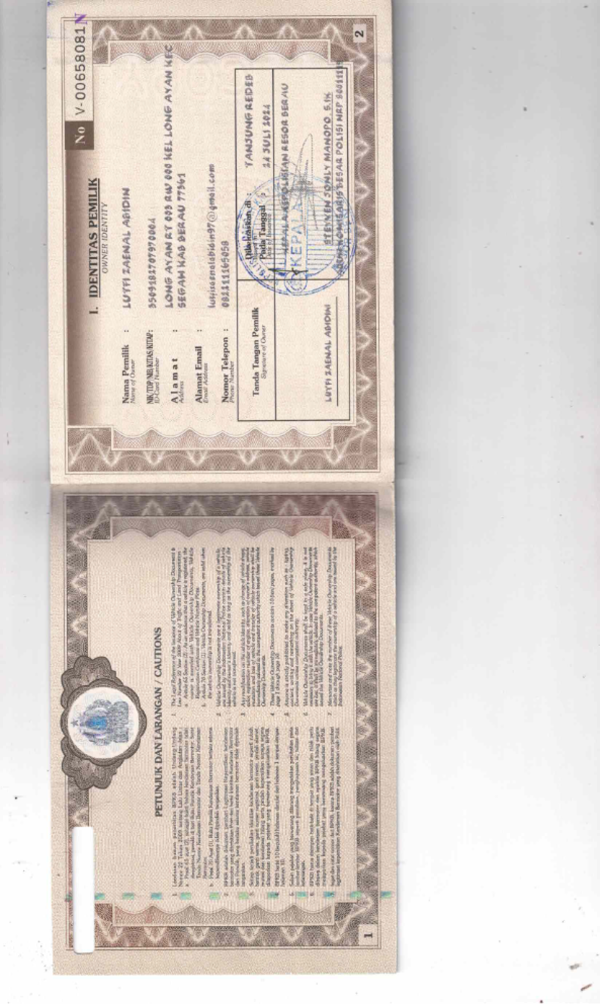 | No. Polisi | : | KT 4489 JE |