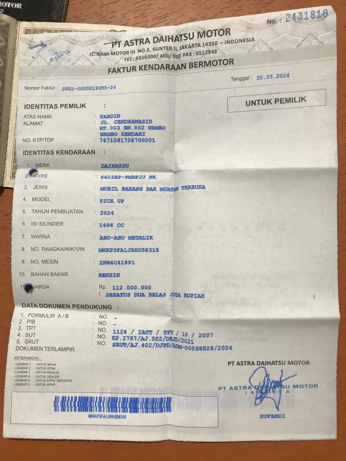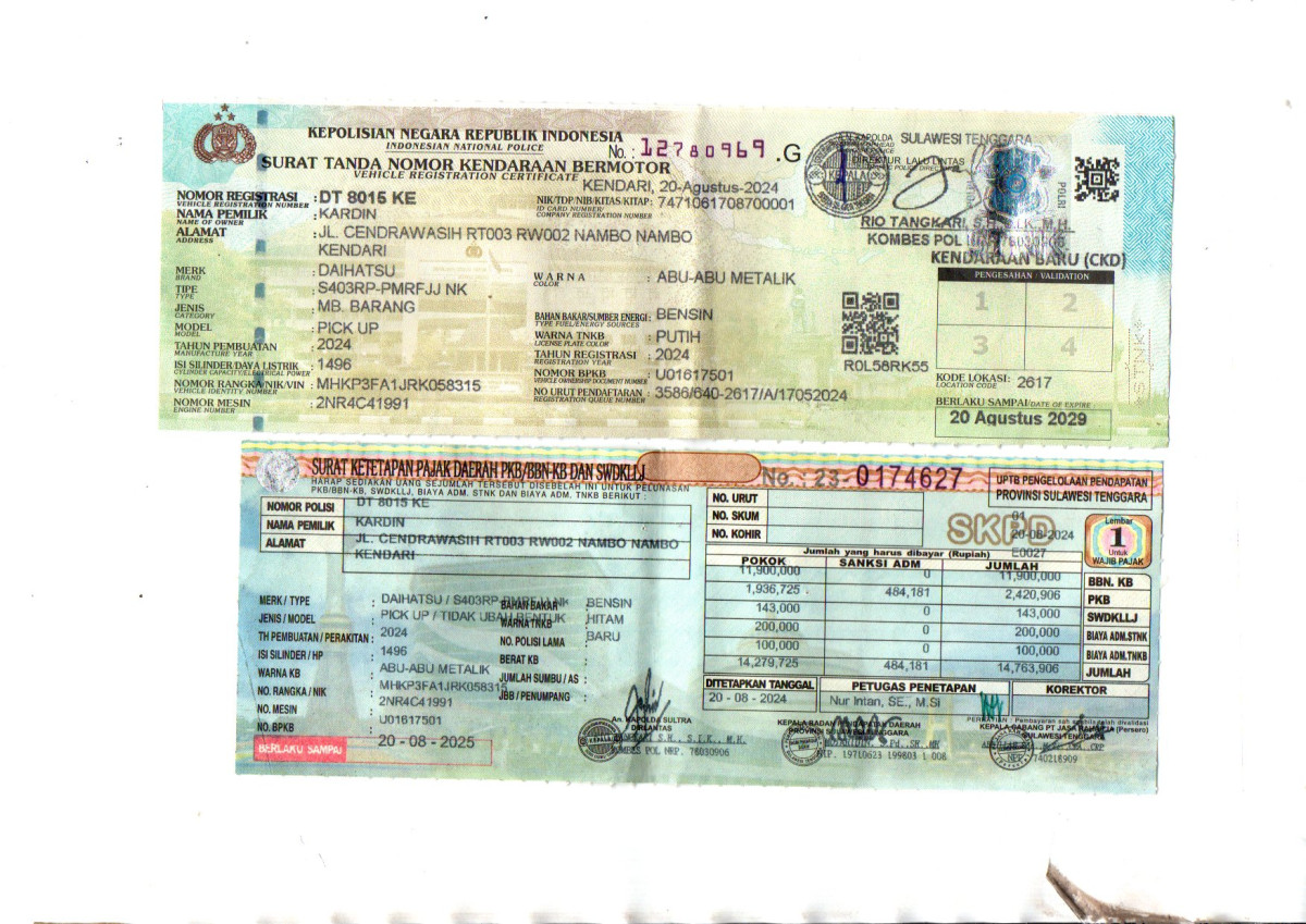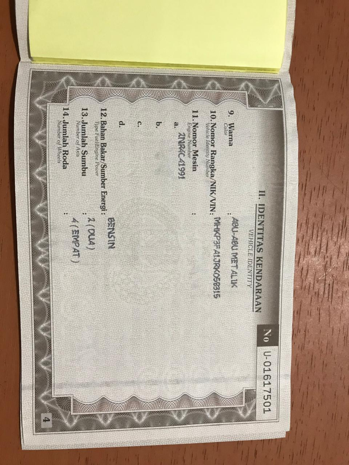 FOTO NOSIN T/A // STNK HANYA BERUPA FOTO SCAN // UNIT TIDAK DILAKUKAN PENGECEKAN OLEH TIM SMARTBID// SEBELUM MELAKUKAN PENAWARAN HARAP CEK KONDISI UNIT DAN DOKUMEN TERLEBIH DAHULU// WAJIB MENGHUBUNGI PIC DAN DATANG KE LOKASI UNTUK PENGECEKAN UNIT// UNIT DILELANG APA ADANYA PERMASALAHAN YANG TIMBUL DILUAR TANGGUNG JAWAB SMARTBID// PENGAMBILAN UNIT SLIDE H+2 DARI PELUNASAN // JIKA INGIN MENGAMBIL UNIT HARAP UNTUK KONFIRMASI DAHULU KE SMARTBID // JIKA YANG MENGAMBIL BIDDER HARAP MEMBAWA KTP ASLI // JIKA PENGAMBILAN DIWAKILKAN WAJIB MEMBAWA SURAT KUASA ASLI // UNIT DIKENAKAN BIAYA PPN 1,1% DARI HARGA TERBENTUK// HUBUNGI PIC ARIFAH +62 822-9182-1322 / HUB CS PUSAT 0811119678