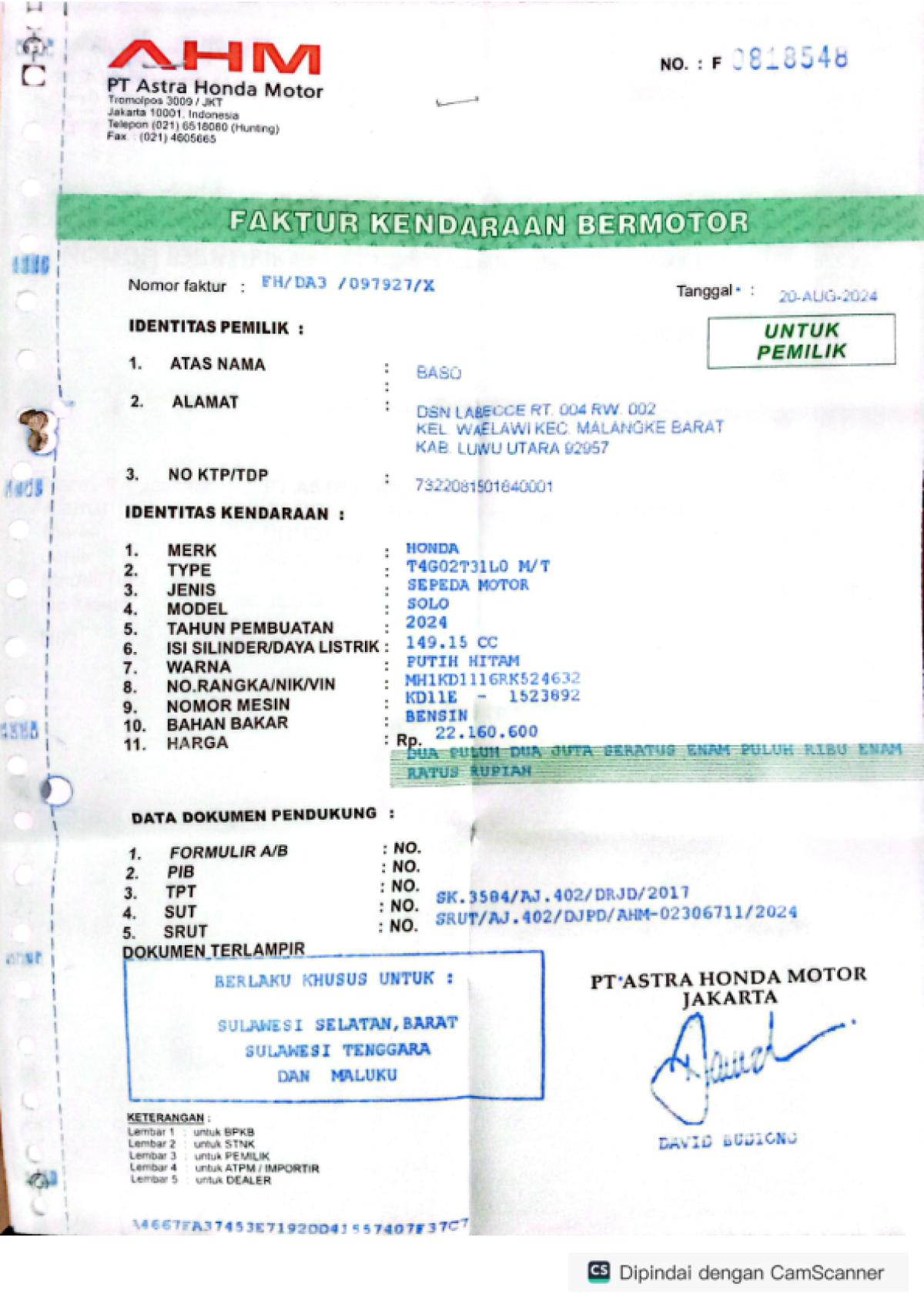 | No. Rangka | : | MH1KD1116RK524632 |