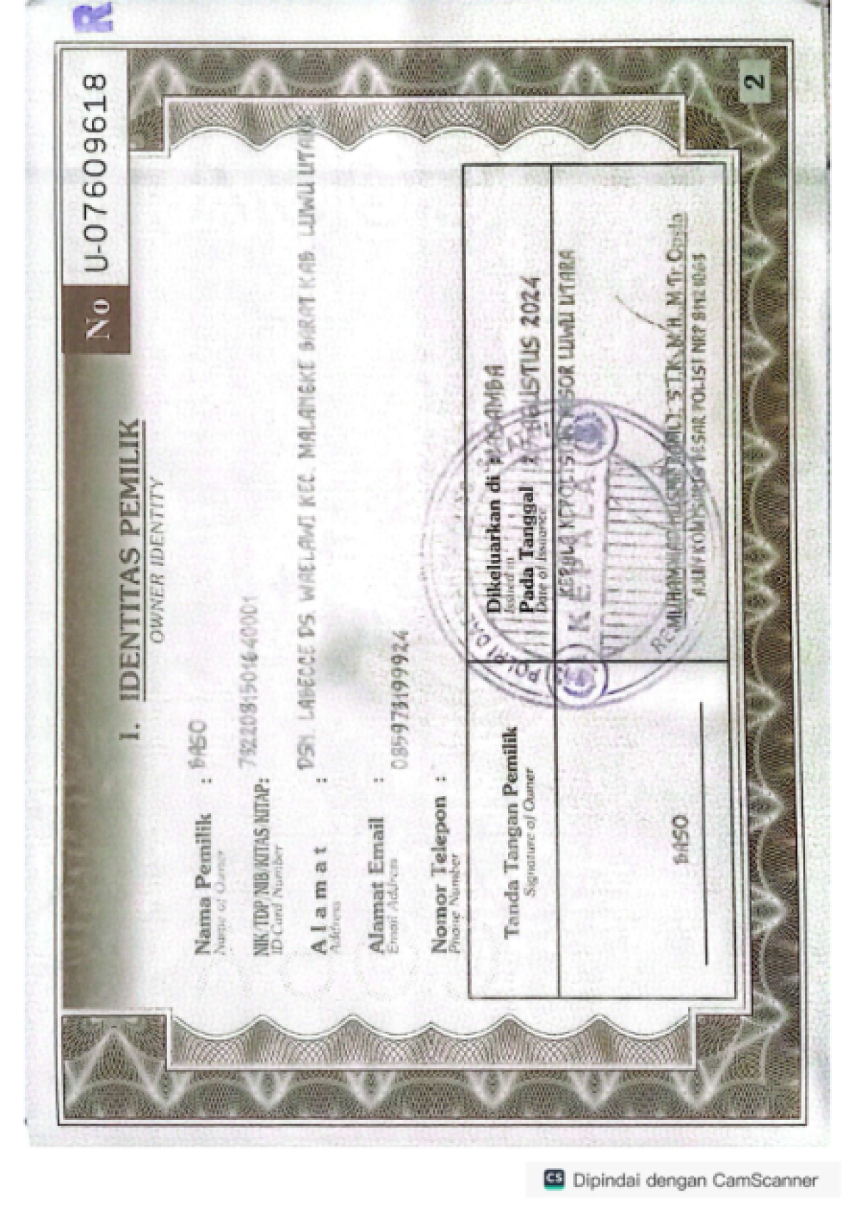 | KWT Blangko | : | Tidak Ada |