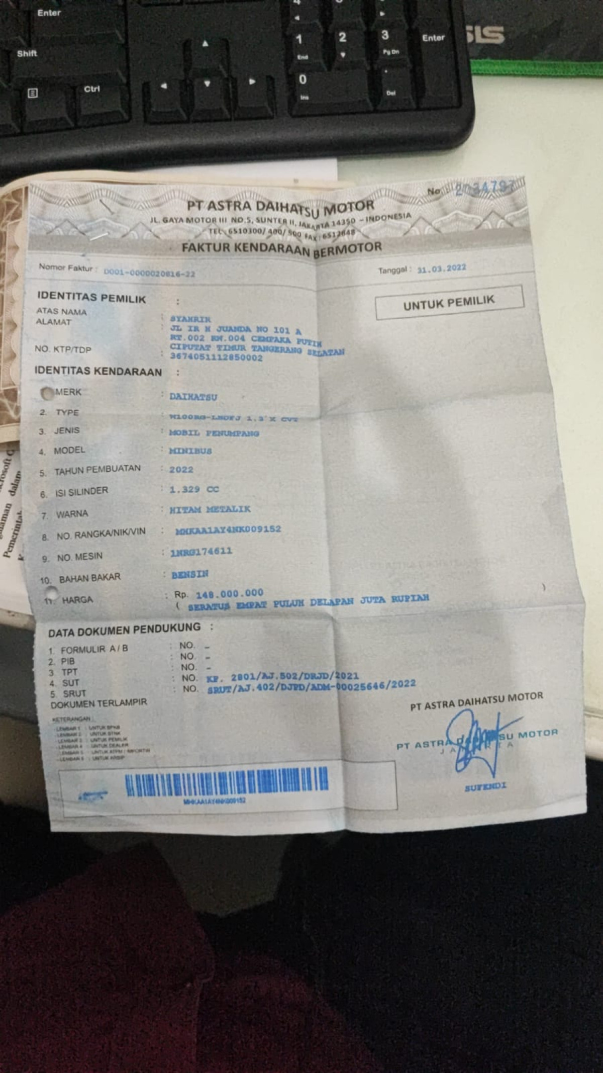 | No. Rangka | : | MHKAA1AY4NK009152 |