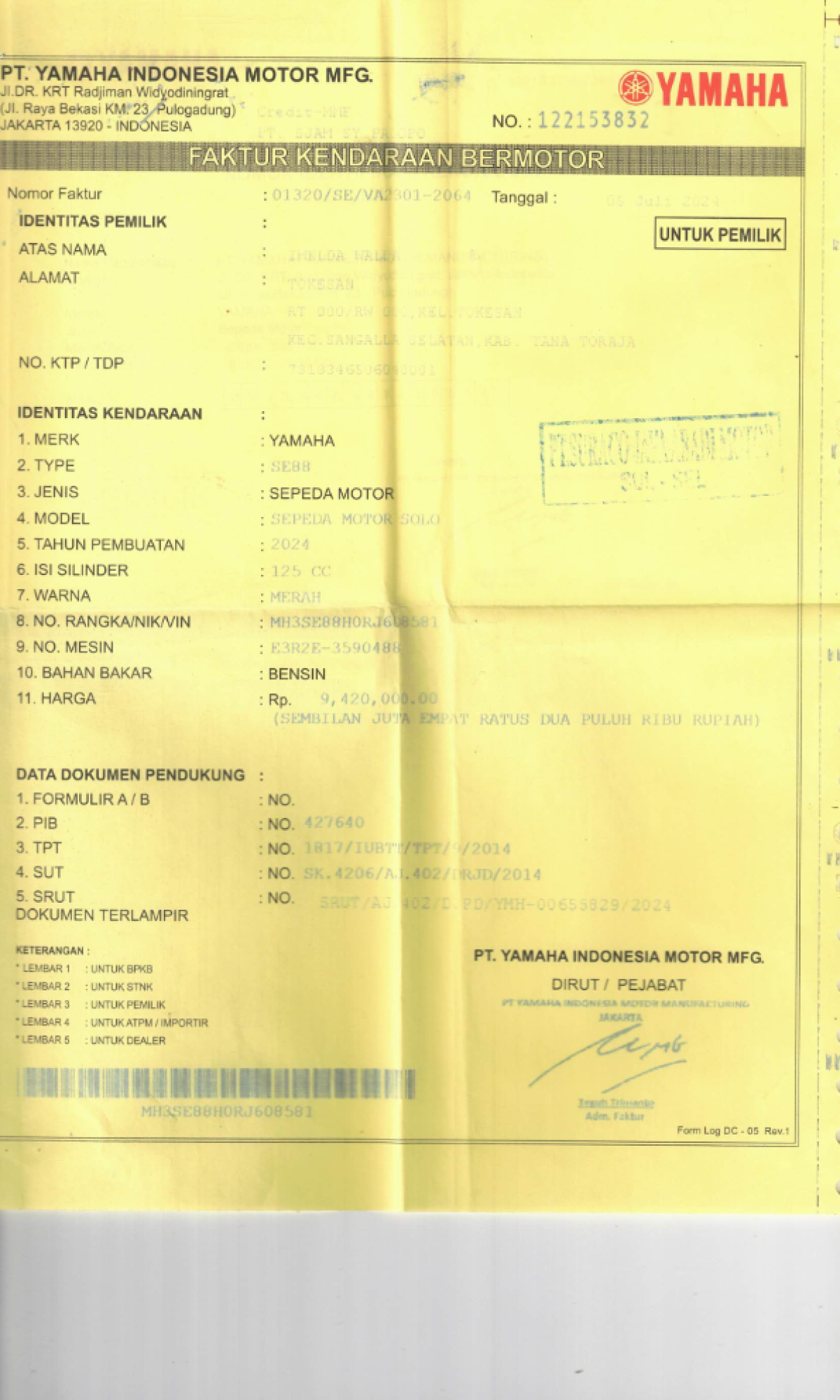 | No. Rangka | : | MH3SE88HORJ608581 |