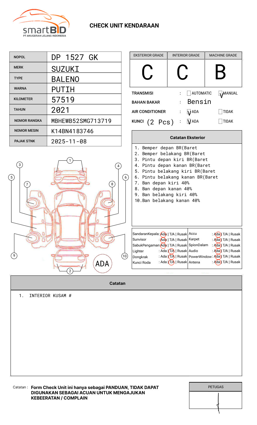 SEBELUM MELAKUKAN PENAWARAN UNIT PESERTA LELANG WAJIB MELAKUKAN PENGECEKAN UNIT DAN DOKUMEN TERLEBIH DAHULU // PIC RUDAL 0821 9140 0425 //