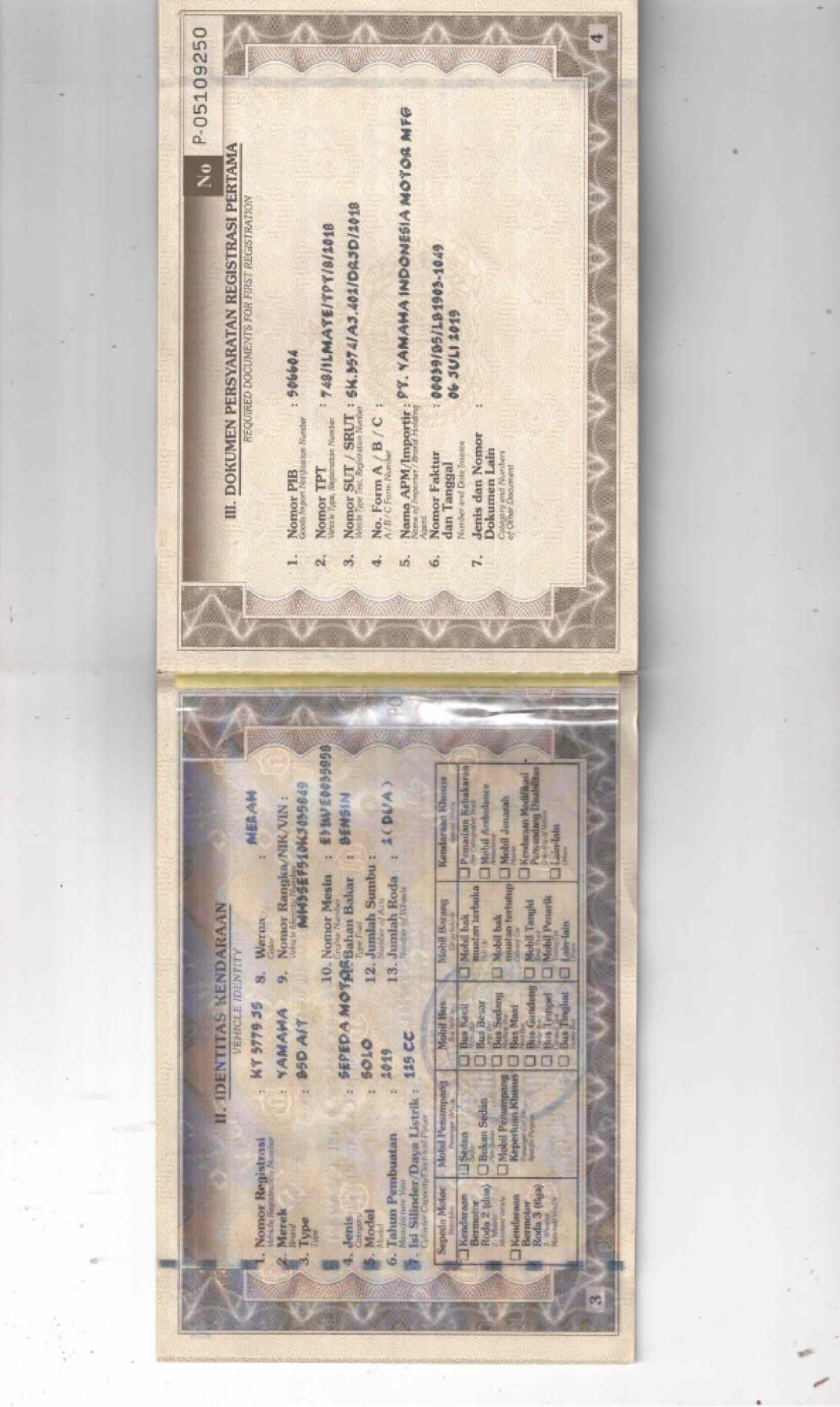 | No. Rangka | : | MH3SEF510KJ035849 |