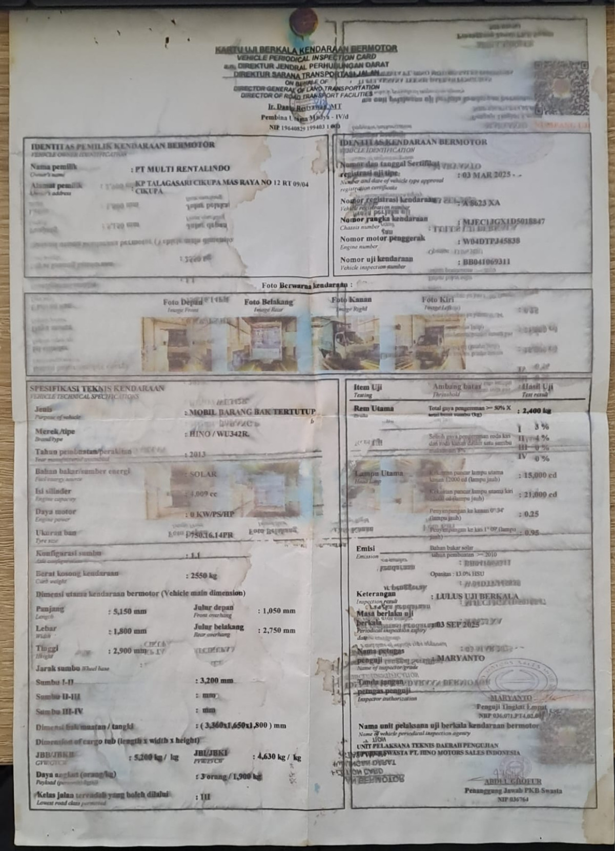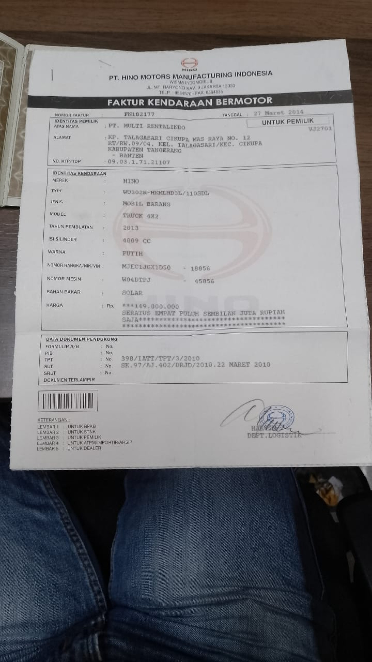 No. Mesin | : | W04DTPJ45838 |