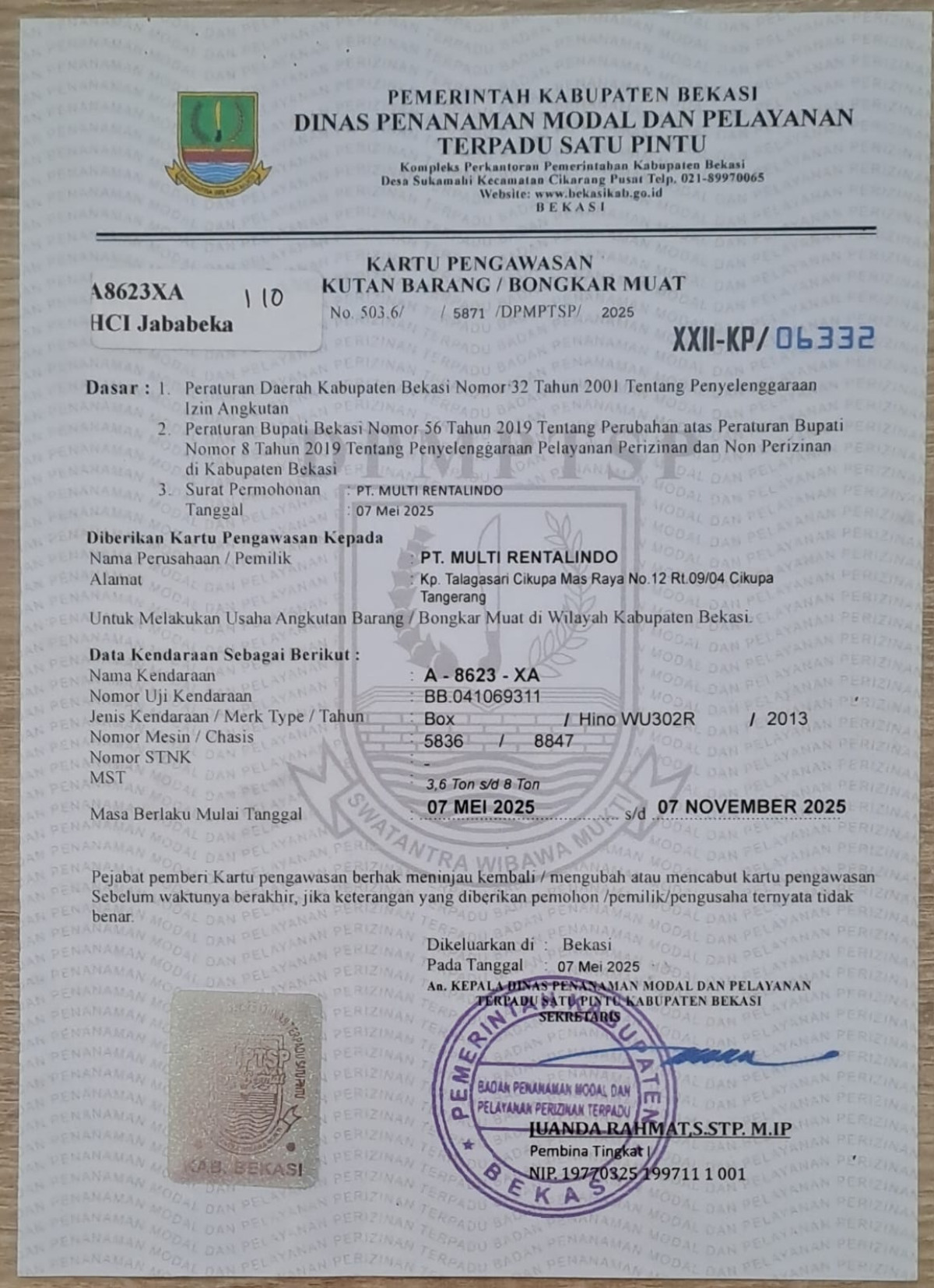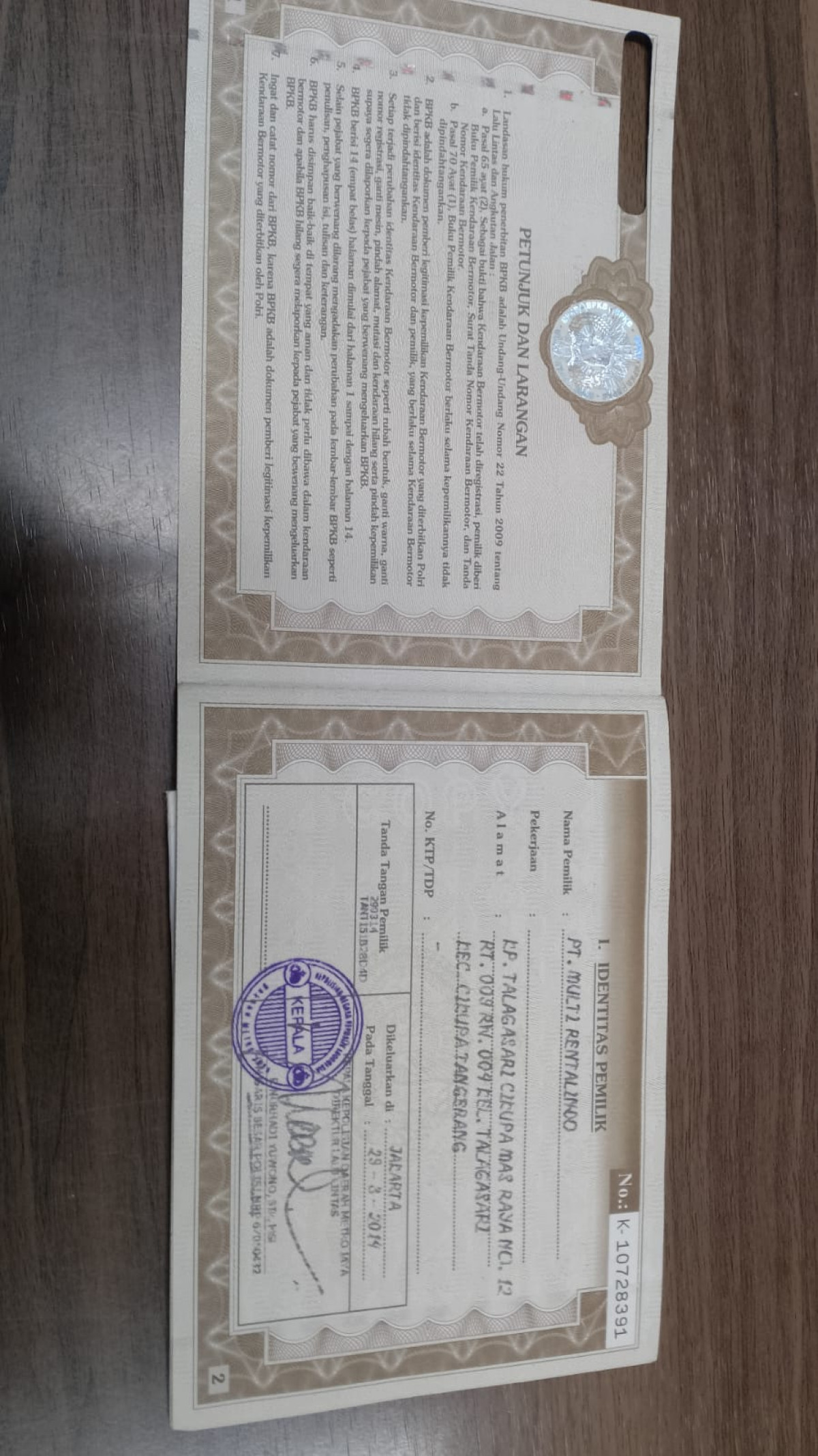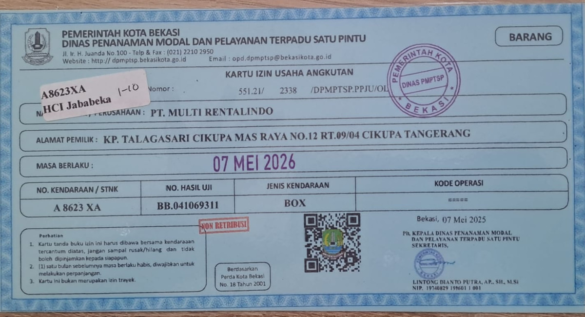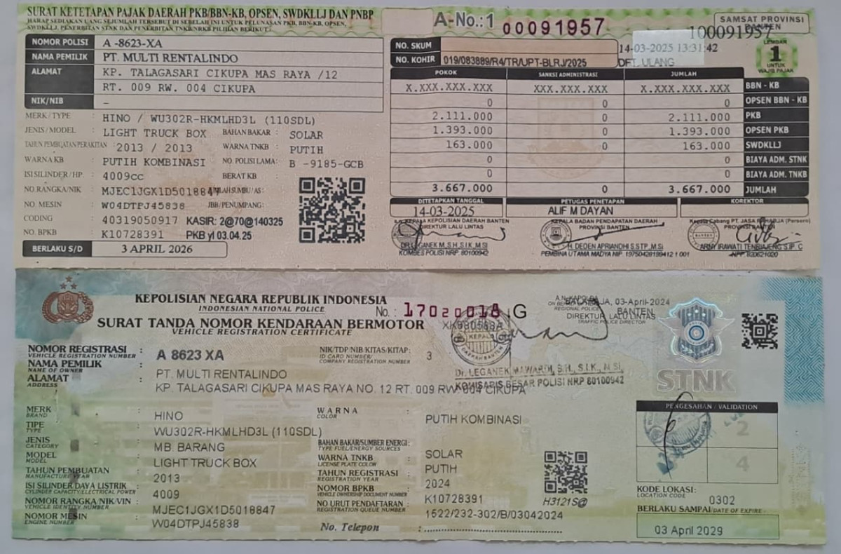 No. Polisi | : | A 8623 XA |