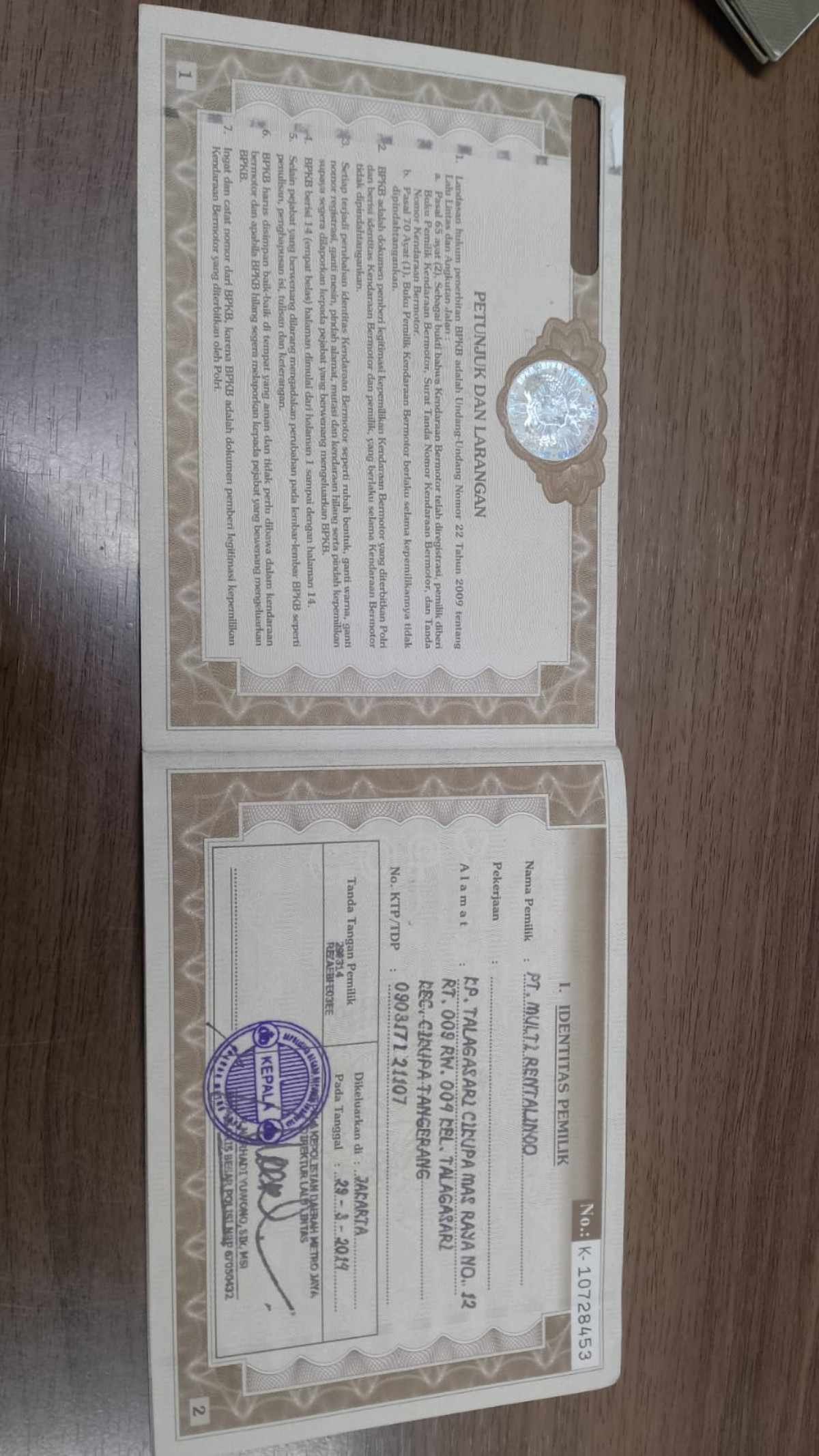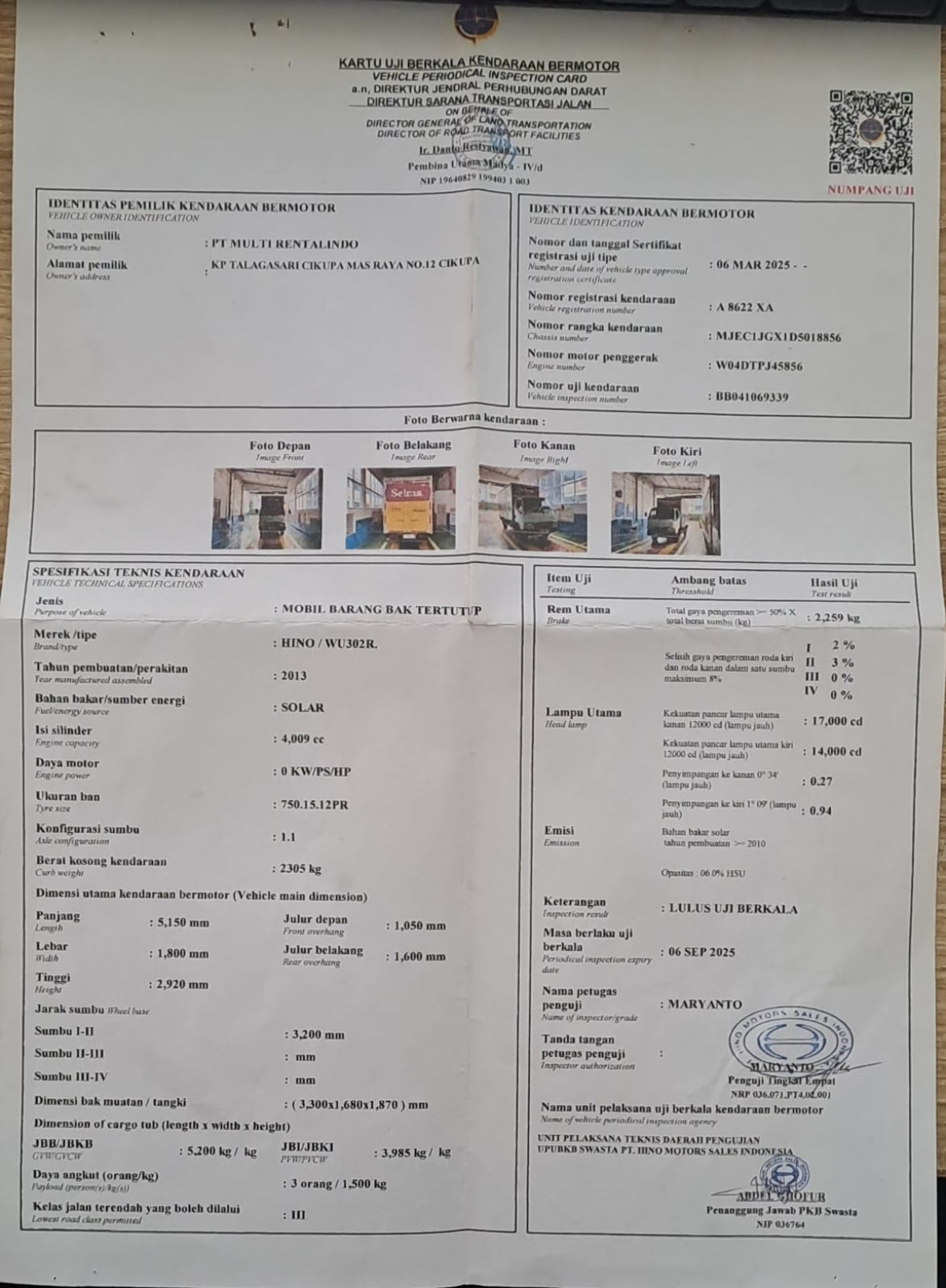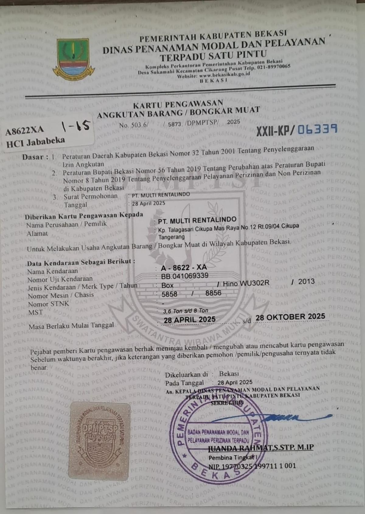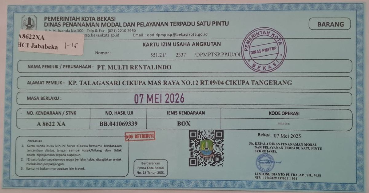 No. Polisi | : | A 8622 XA |