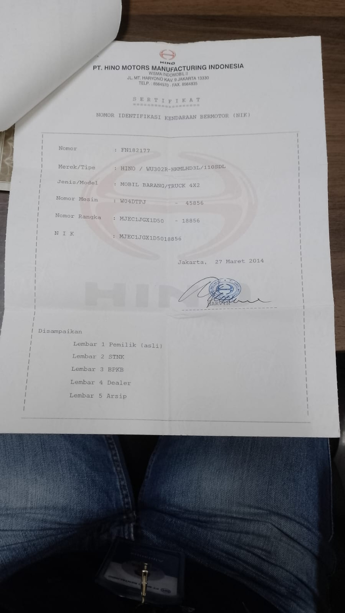 No. Mesin | : | W04DTPJ45856 |