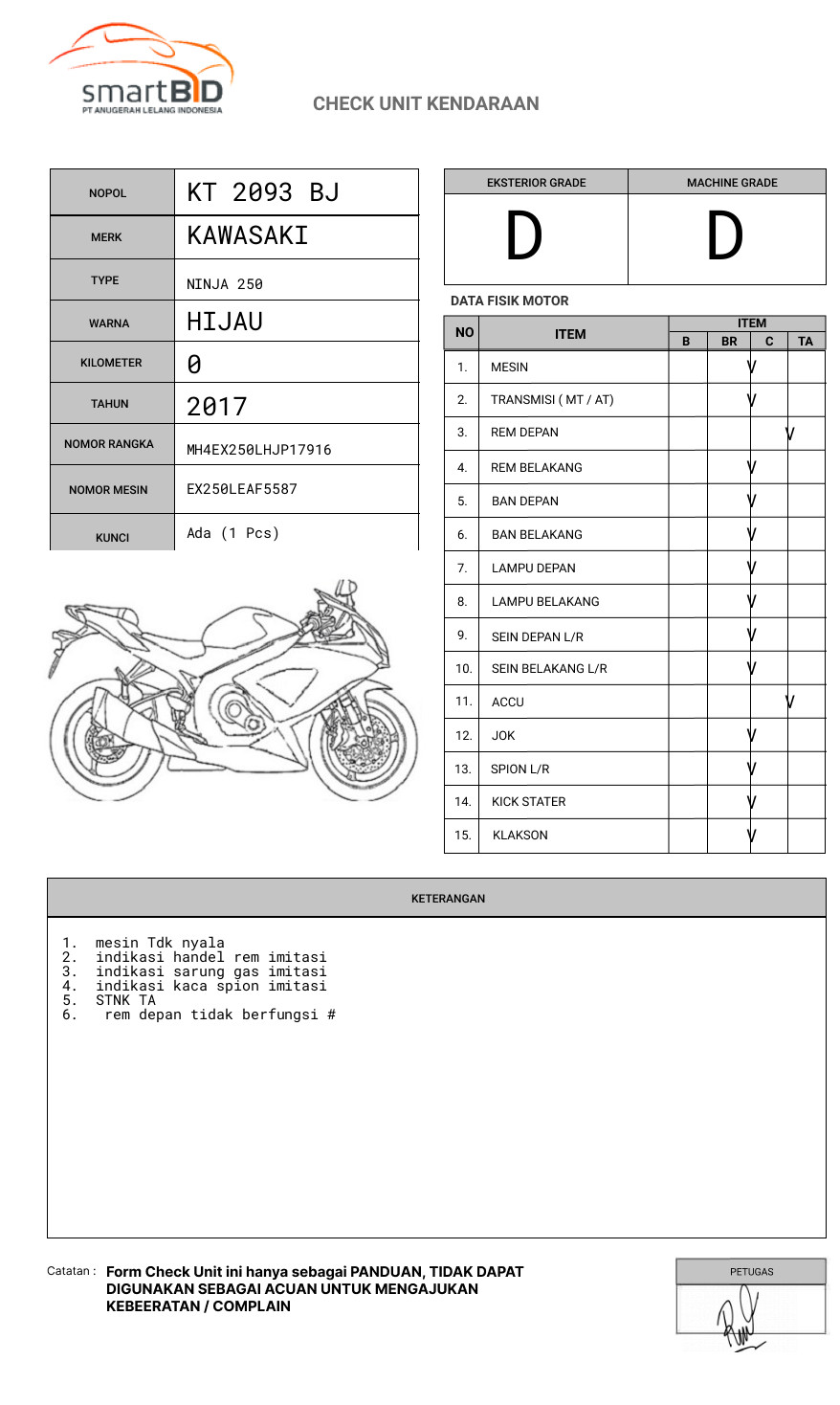 SEBELUM MELAKUKAN PENAWARAN UNIT PESERTA LELANG WAJIB MELAKUKAN PENGECEKAN UNIT DAN DOKUMEN TERLEBIH DAHULU // PIC MIRZA : 0822-3357-3376 / PIC RESKI 0853-4884-2551 // FOOT NOSIN TIDAK TERJANGKAU// FOTO NOKA BEBERAPA DIGIT TIDAK TERLIHAT JELAS//