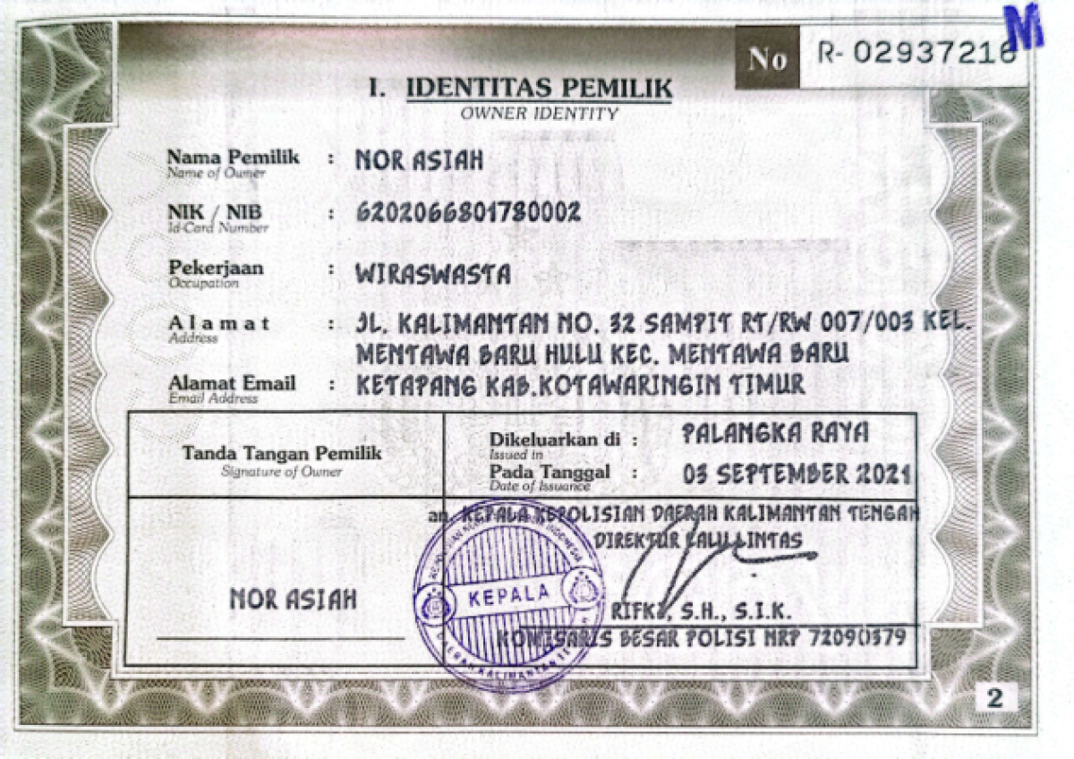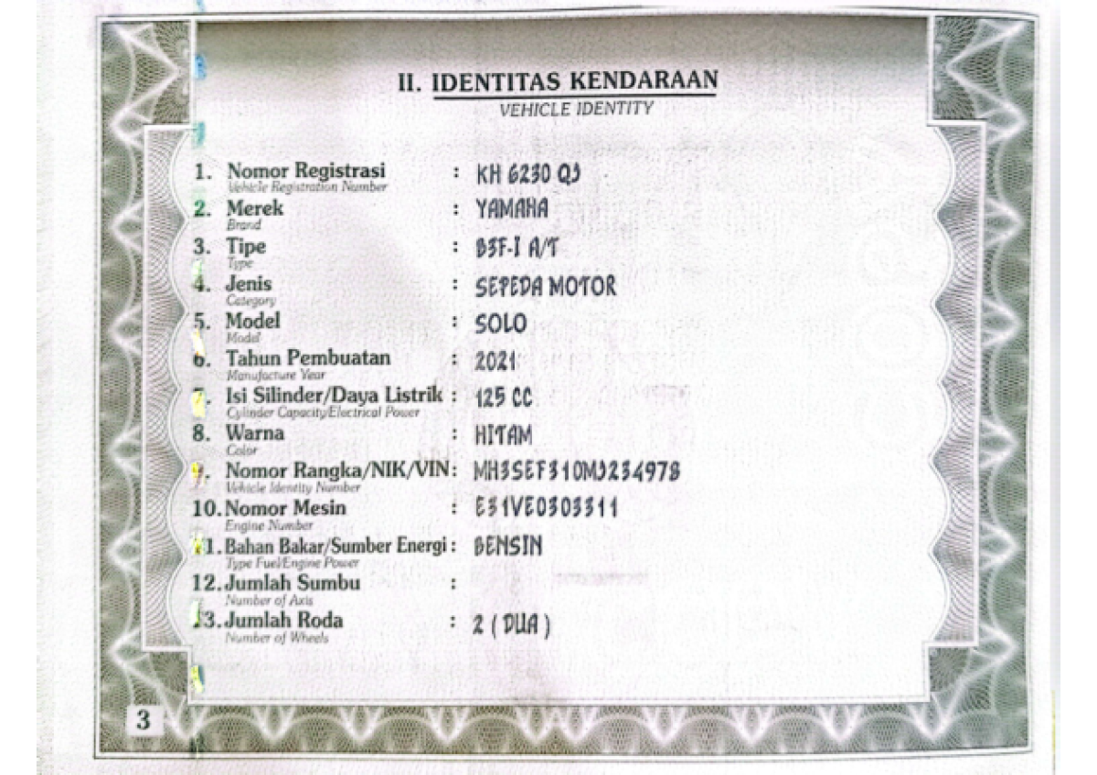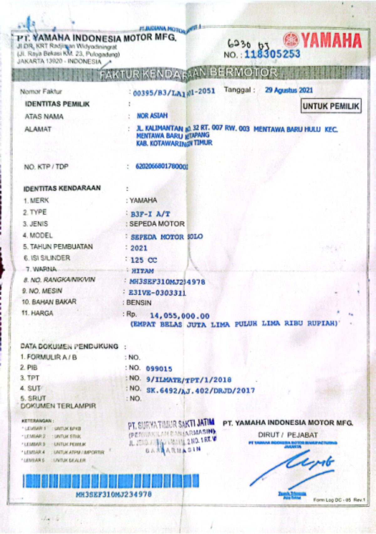 | No. Rangka | : | MH3SEF310MJ234978 |