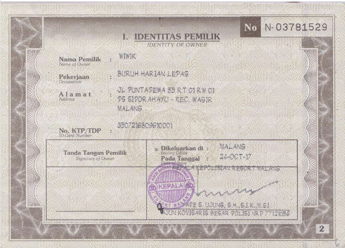 | No. Rangka | : | MHKV5EA1JHK030644 |