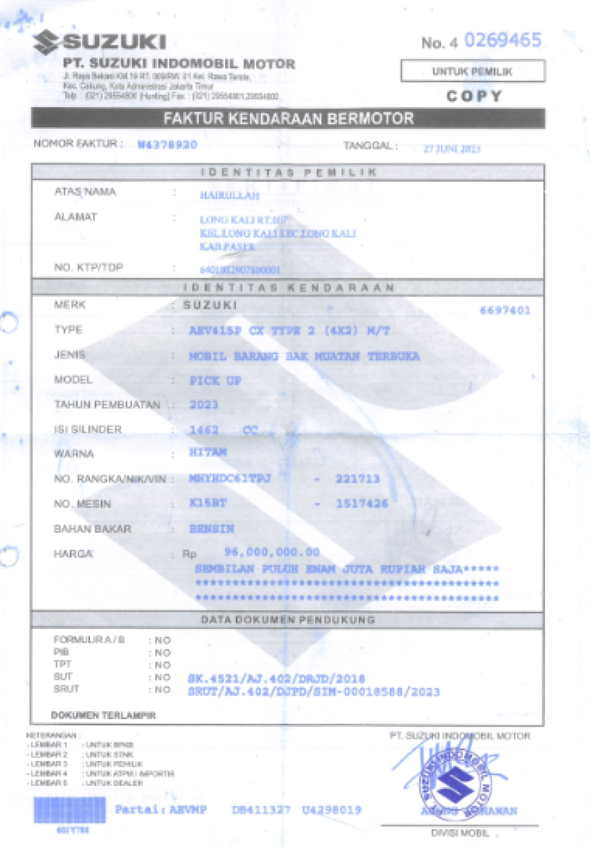 No. Polisi | : | KT 8036 ER |
