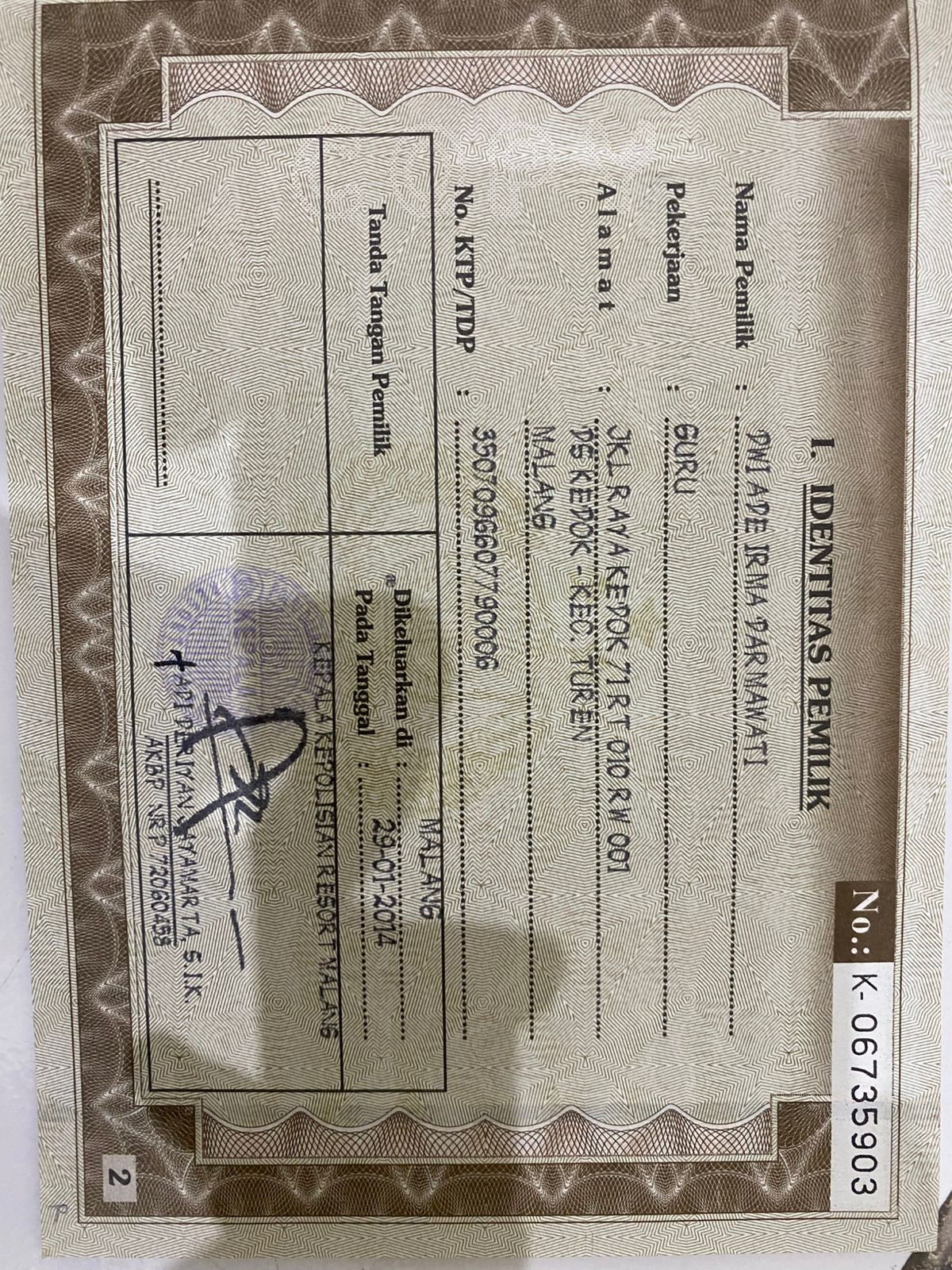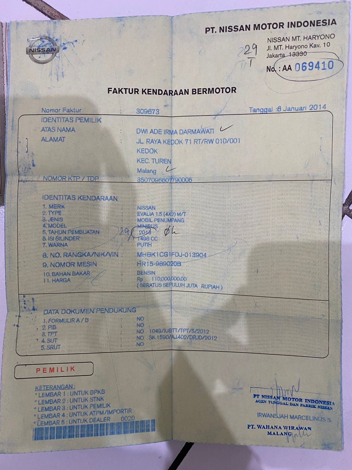 No. Polisi | : | N 1319 DG |