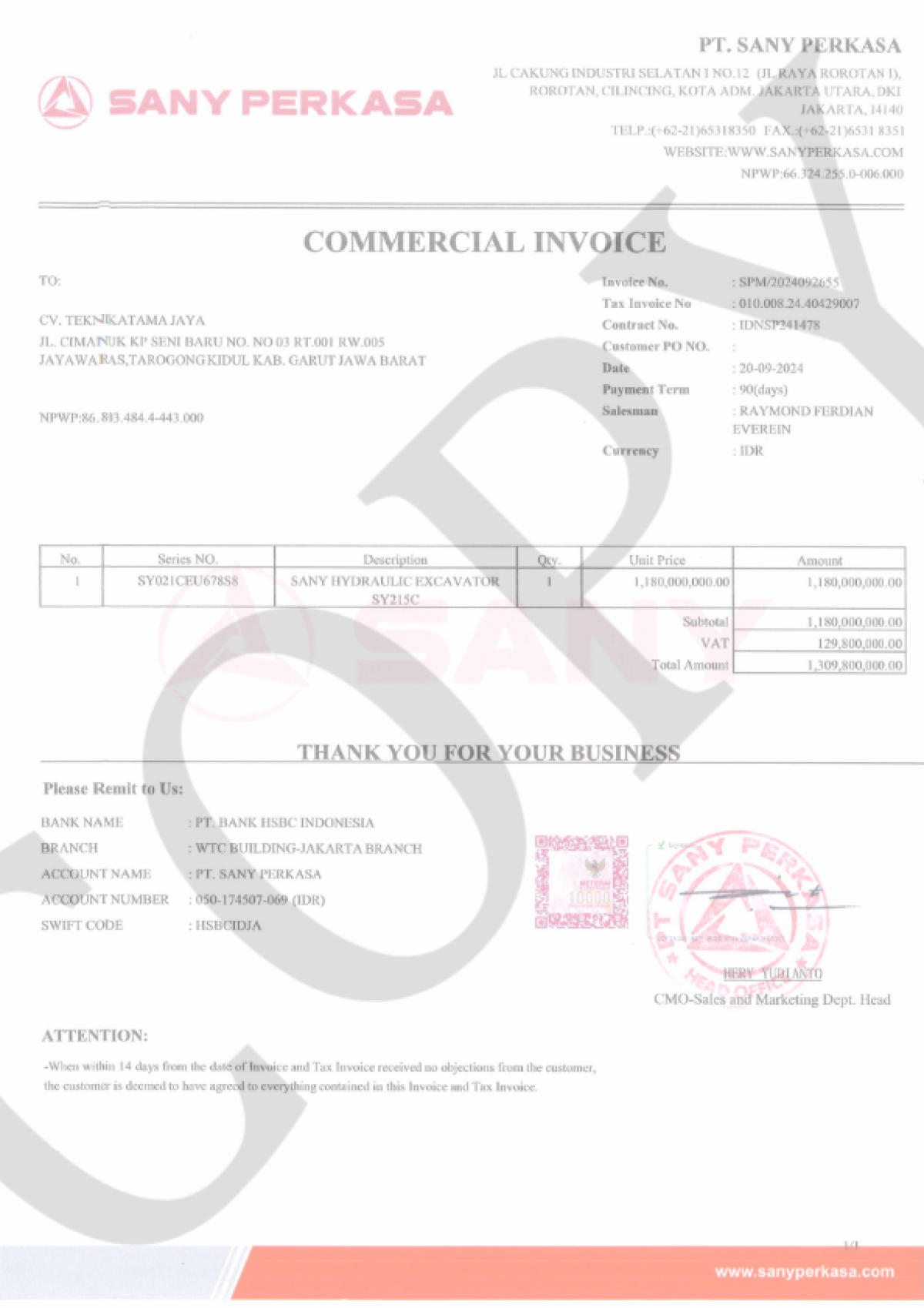 Harga dasar lot ini diatas atau sama dengan Rp500.000.000, - dikenakan minimal deposit Rp25.000.000 // Batas Pembayaran: 5 hari setelah invoice rilis